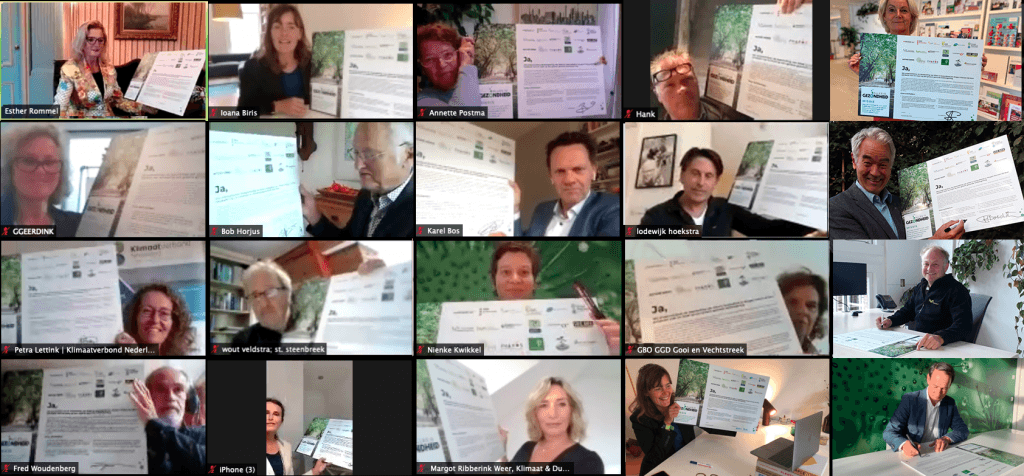 Ondertekenaars van de belofte zijn: Arcadis, GGD Amsterdam, GGD Gooi en Vechtstreek, GGD Hollands Noorden, NL Greenlabel, Groen Kapitaal provincie Noord-Holland, Horjus & Partners, IVN, Klimaatverbond Nederland, Landschap NH, LandschappenNL, Luc Bos Stedenbouwkundig Bureau, Margot Ribberink, Nature Desks, Nature for Health, Pharos, Staatsbosbeheer, Stichting Steenbreek, Vereniging Arts en Leefstijl en Alles is Gezondheid.