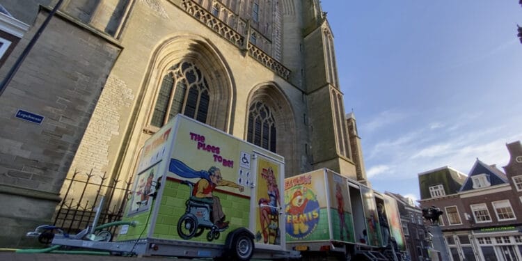 De gemeente Haarlem heeft de hulp ingeroepen van Ed Toilet, een openbare wc die normaal op kermissen te vinden is. Qua versiering past-ie daar wellicht ook beter, maar vanwege het sluiten van de horeca zette de gemeente de mobiele wc-unit dit keer neer naast de Grote of Sint Bavokerk. En daar is niet iedereen even blij mee.