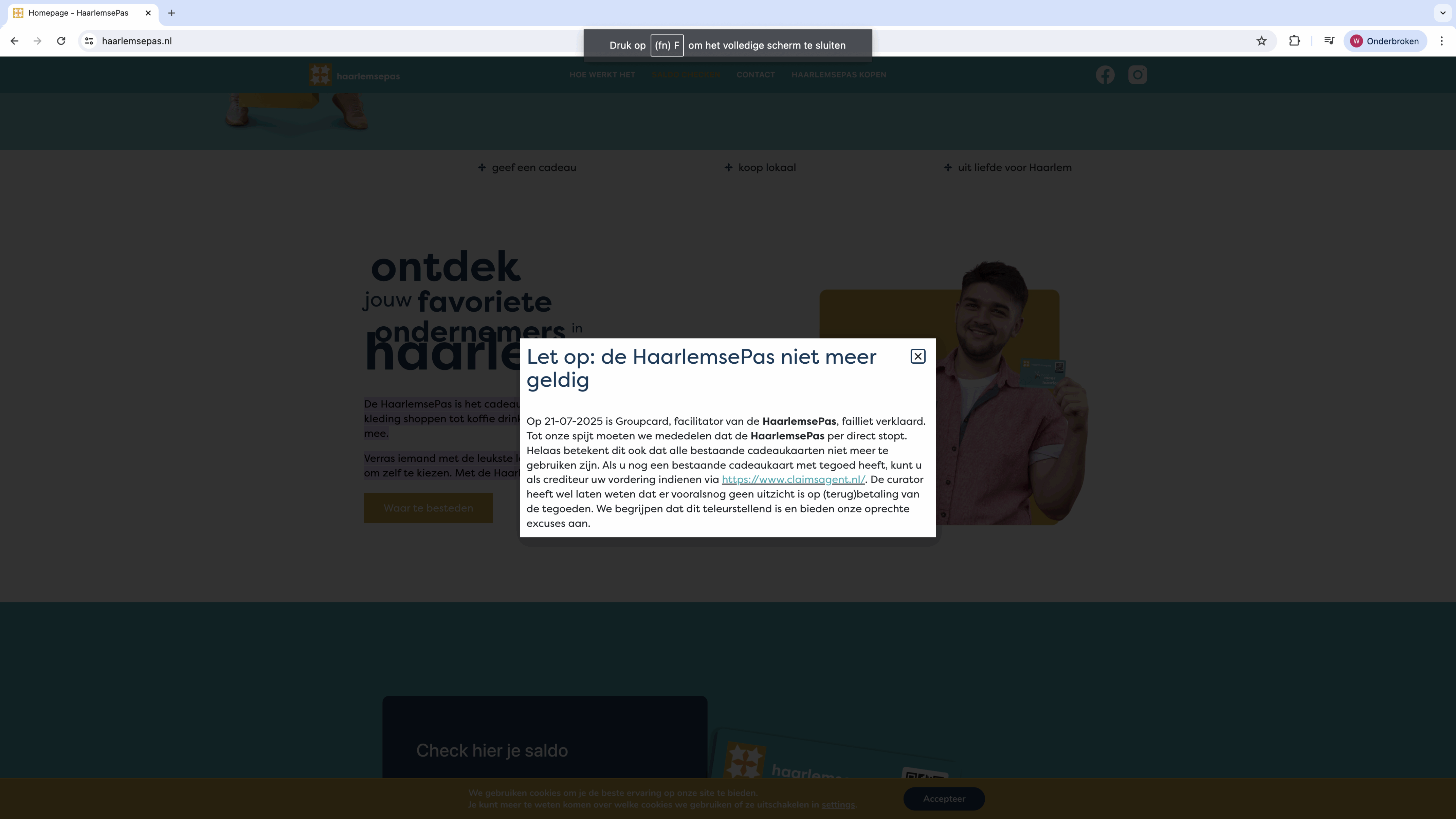 Op de website van de lokale cadeaukaart valt te lezen dat deze onbruikbaar is geworden en bezitters een claim kunnen indienen. “De curator heeft wel laten weten dat er vooralsnog geen uitzicht is op (terug)betaling van de tegoeden.”