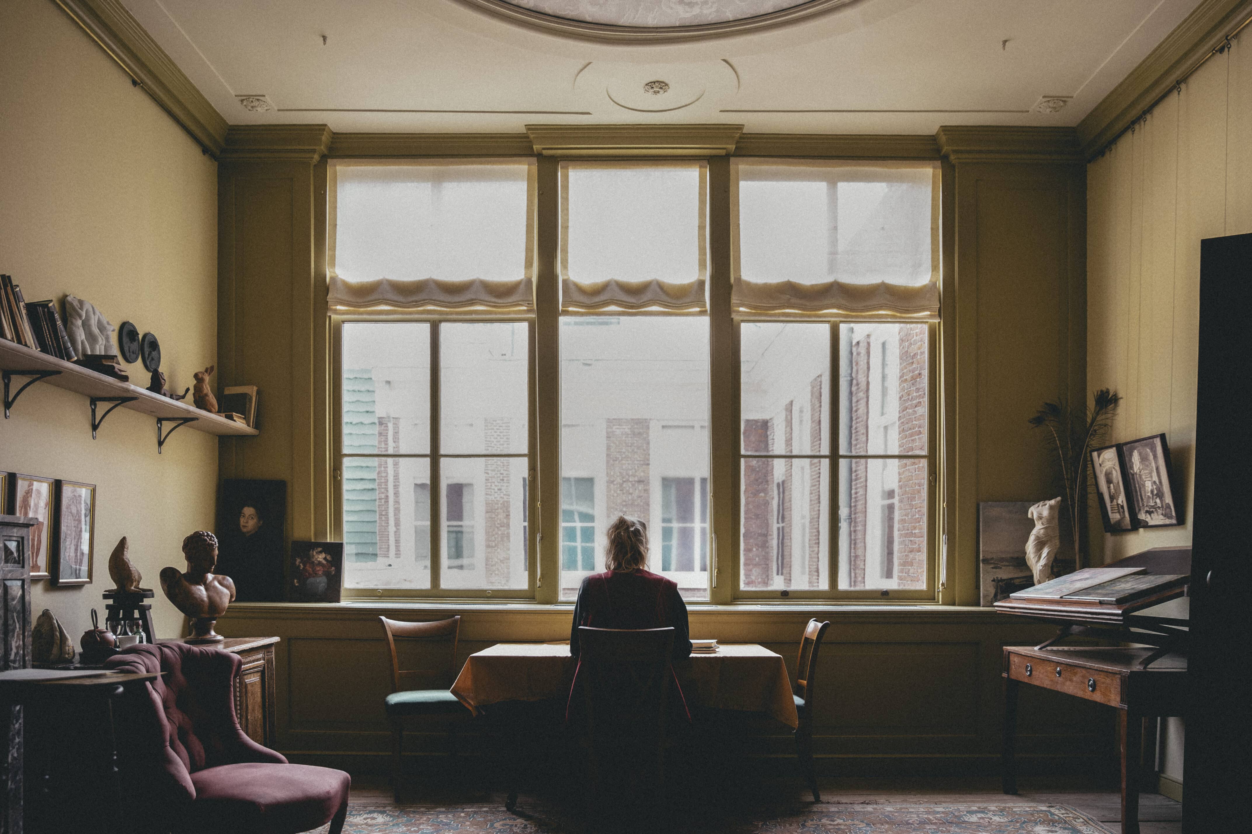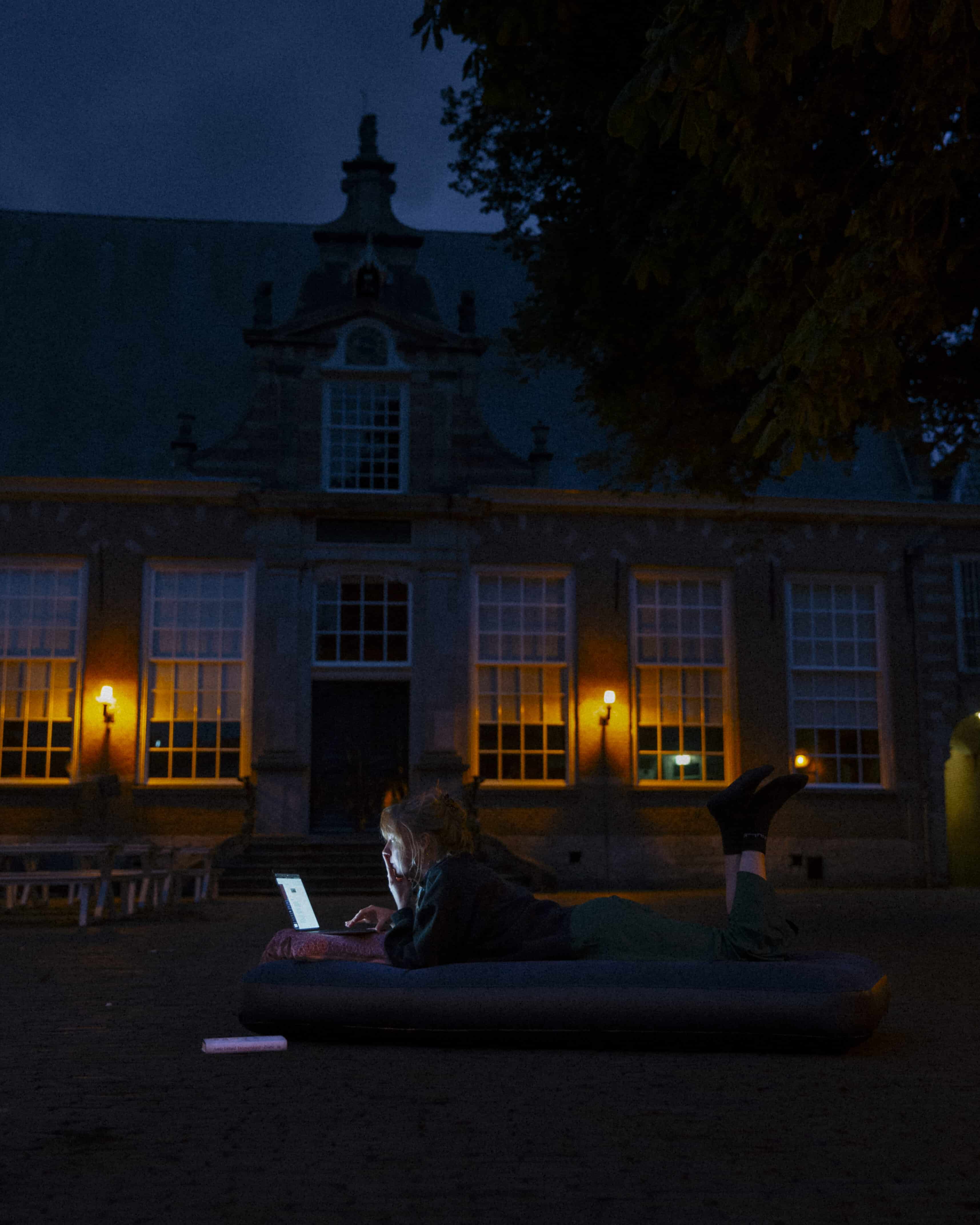 “Het leuke is dat ik er ook zit vóór en na sluitingstijd. Hierdoor beleef je de monumenten alleen met geluiden die je zelf maakt. Dat is heel bijzonder”, aldus Anouk. In de bibliotheek werkte ze zelfs s’nachts door en zat ze op een gegeven moment buiten op de binnenplaats in het donker te schrijven.