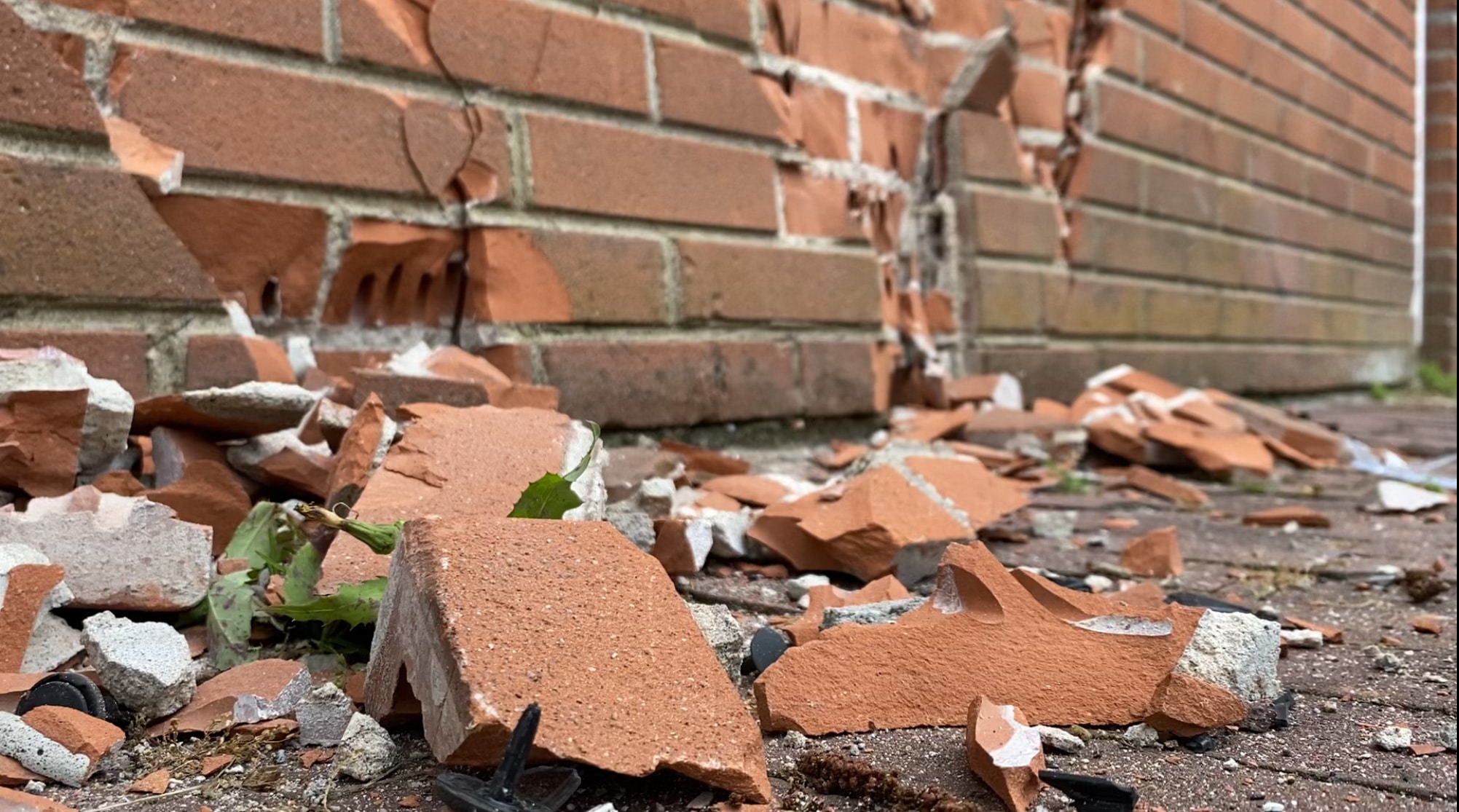 Op de plek waar de auto de gevel heeft geraakt wonen geen mensen, maar is de bergingsruimte van mevrouw Lin. “Het was een harde klap en precies tegen de muur van mijn berging.” Nadat ze een paar fietsen heeft weggehaald, is een scheur aan de binnenkant duidelijk te zien. “Jammer dat die auto hier tegenaan is gereden. Nu moet ik het laten repareren. Dat is toch weer een hoop gedoe.”