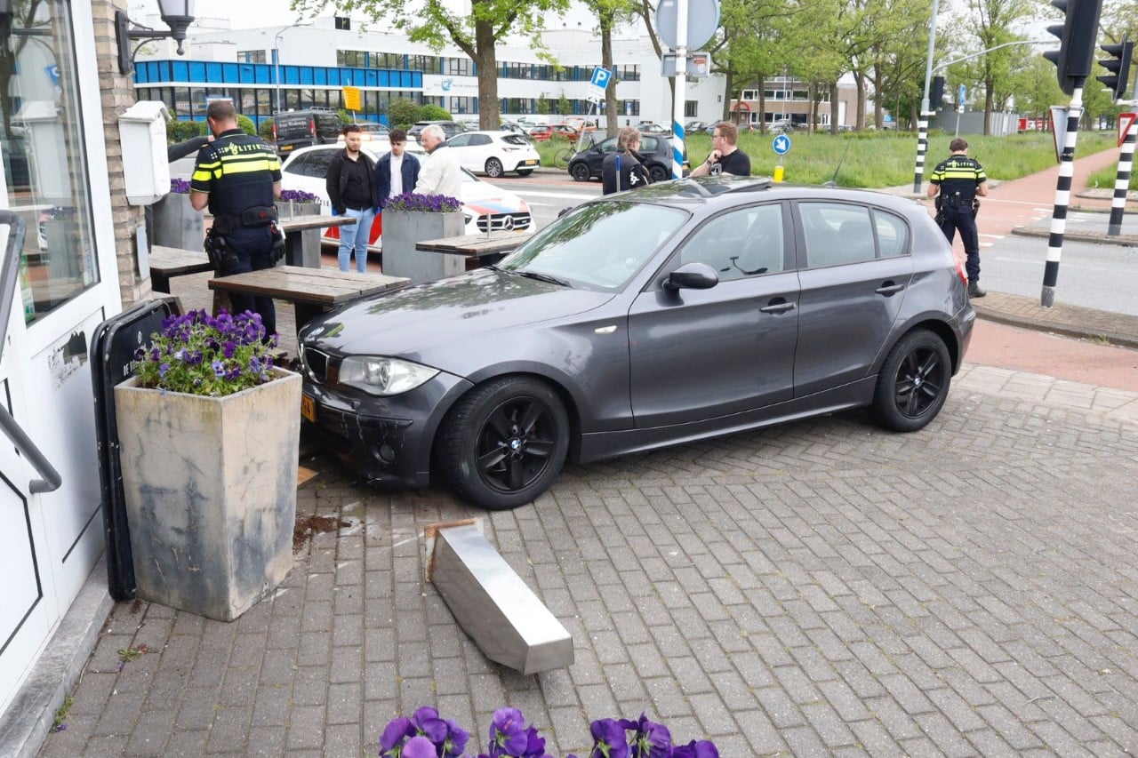Bij de lunchroom is er schade aan het terras, de buitenkant van de muur en de plantenbakken. Het personeel van het restaurant is er zelf vrij nuchter onder: “Ik zag het ongeluk gebeuren en zat ongeveer één minuutje in de stress. Gelukkig zat er niemand op het terras en is de schade beperkt gebleven”, vertelt een medewerker van de lunchroom aan Haarlem105.