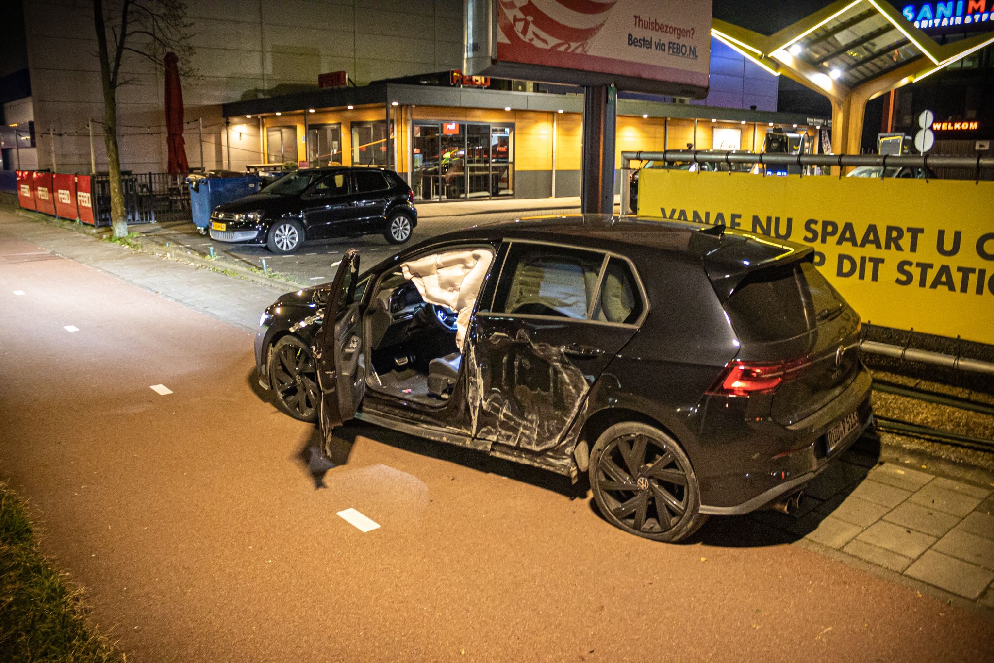 De automobilist kwam uiteindelijk op de stoep, vlakbij het tankstation tot stilstand. Onderweg raakt de auto onder meer een laadpaal en een lantaarnpaal. Er was geen andere auto betrokken bij het ongeluk.
