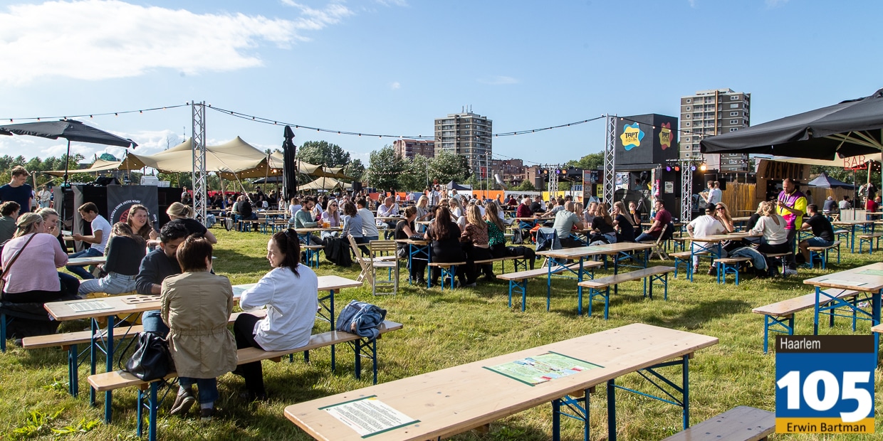 Vrijdag 30 juli en zaterdag 31 juli was het Burgemeester Reinaldapark omgetoverd tot een heuse ‘biergarten’, voor de eerste editie van Haarlem Tapt. Alle bezoekers konden op 1,5 meter afstand (en zittend) in verschillende shifts genieten van allerlei soorten bier.