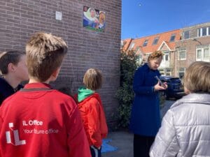 Judith Leyster is dan ook de enige vrouwelijke schilder uit West-Europa die door een meesterproef van bovenstaand zelfportret is toegelaten tot het Haarlemse Sint Lucasgilde van meesterschilders. “En dat betekende dat ze een eigen atelier met leerlingen mocht runnen”, vertelt Cnossen aan de buurtbewoners.