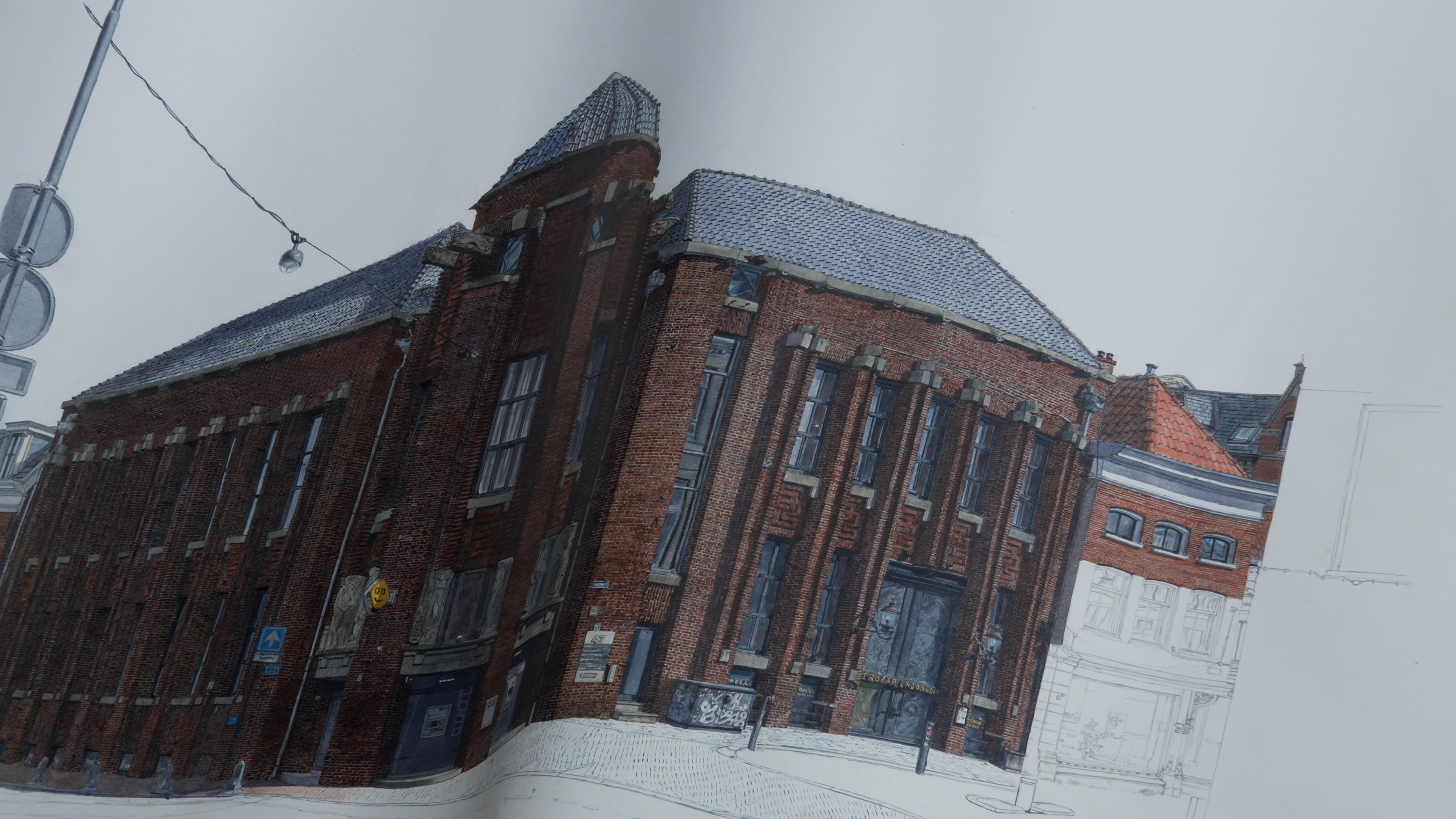 Bijna alle gebouwen die hij tekent, staan in Haarlem. “Andere steden zijn mooier dan Haarlem, maar dan heb je reistijd. Hier valt ook genoeg te zien dus ik denk dat ik hier de rest van mijn leven nog wel kan tekenen.”