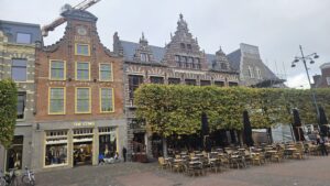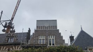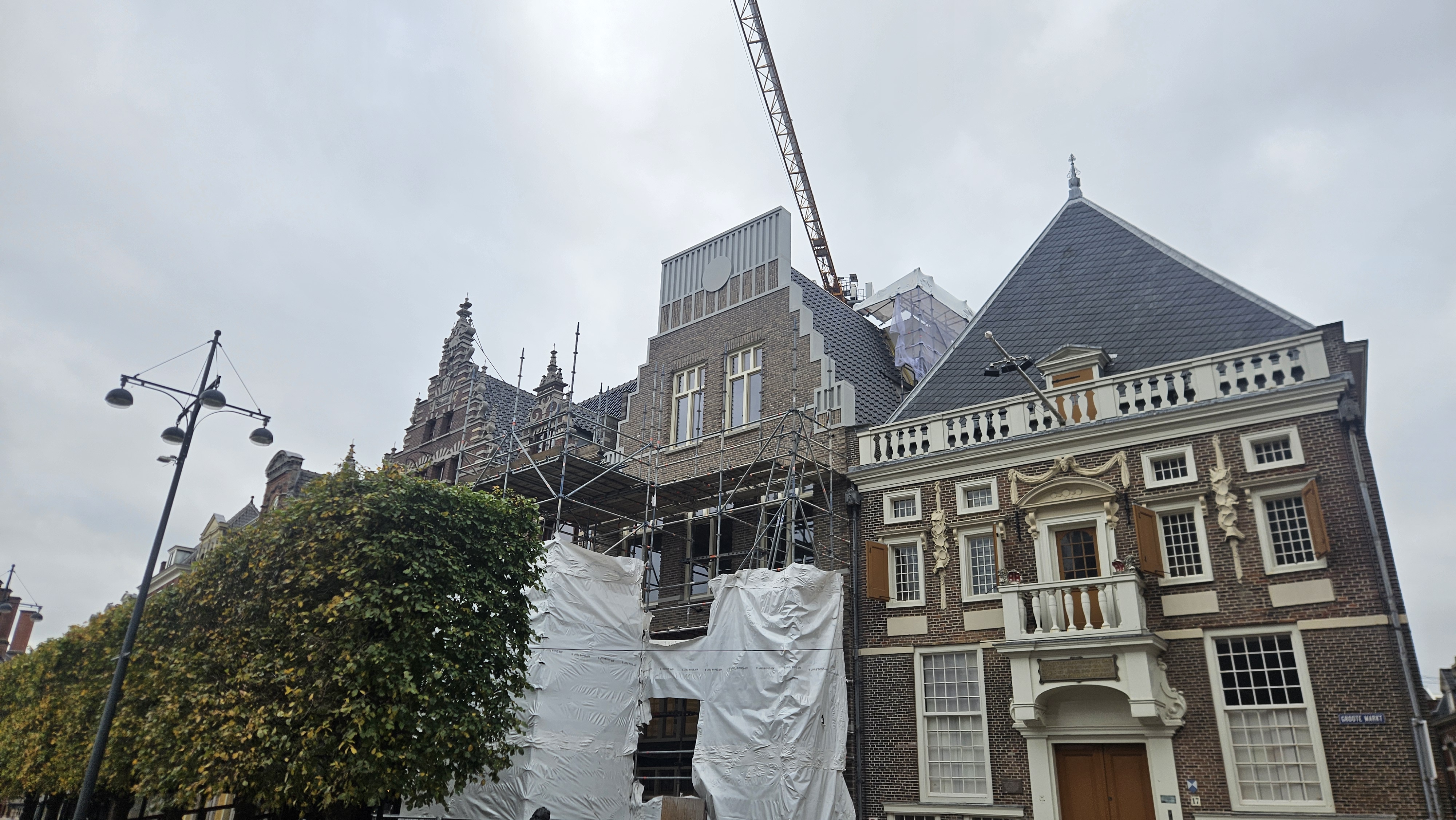 Eén van de nieuwe gevels die Braat opviel, is die op de Grote Markt. Naast de Brinkmann stond vroeger een vierkante jaren 80-stijl gevel. Daar komt nu, achter de steiger en het doek, een moderne interpretatie van een trapgevel tevoorschijn. “Dat vind ik wel leuk geworden, maar wat er boven de Brinkmann uitsteekt, vind ik afschuwelijk.”
