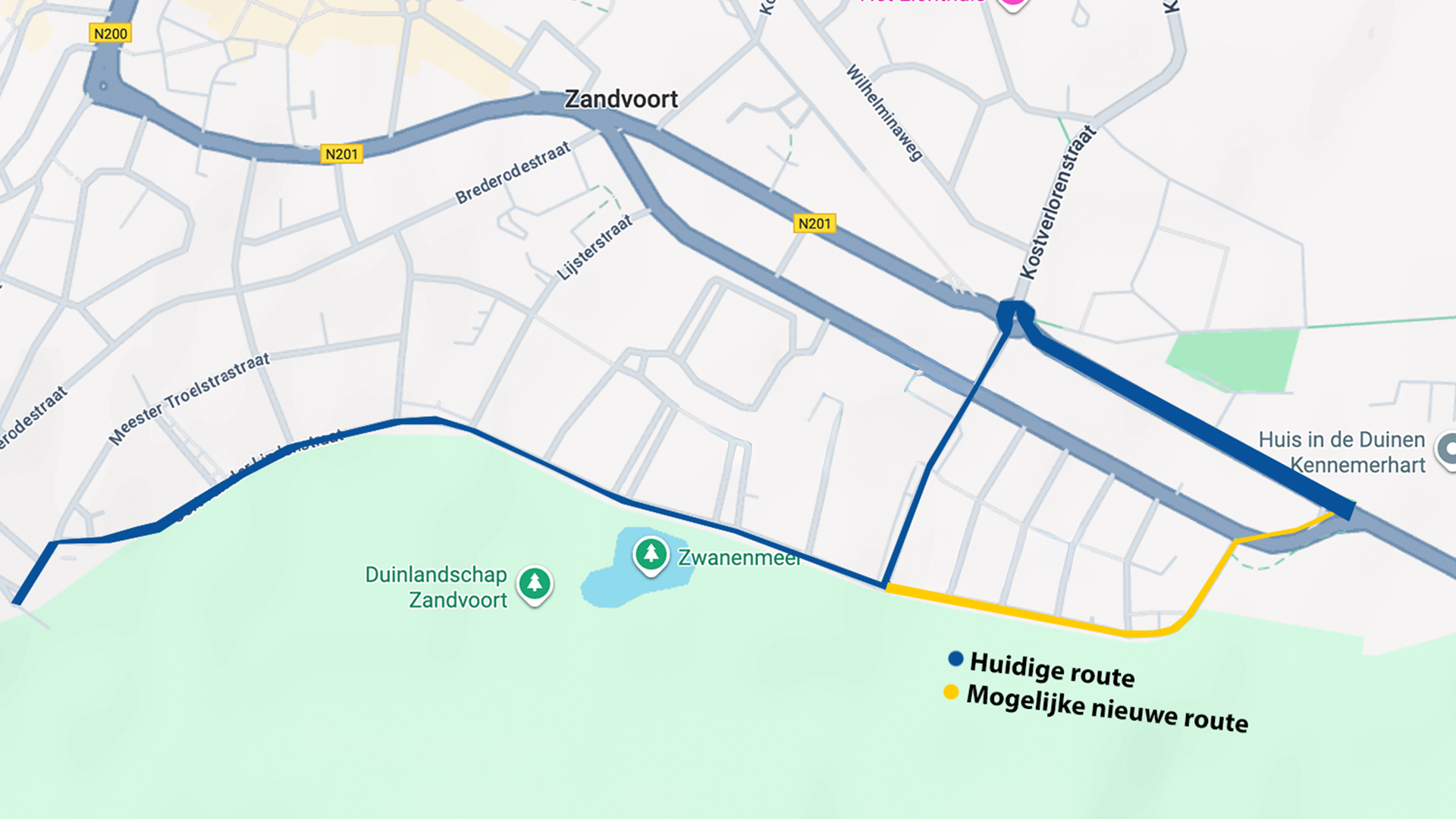 Bekijk de eventuele nieuwe route hieronder. Tekst loopt door onder de afbeelding.