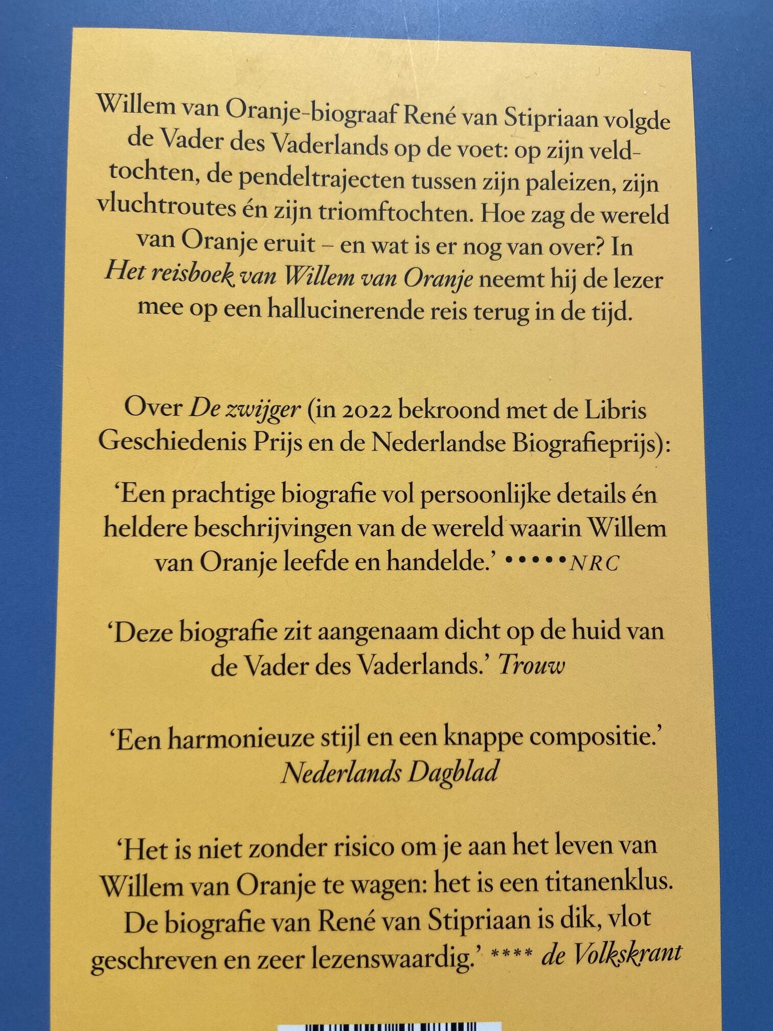 Door het vele onderzoek voor Het volle leven, over de literatuur en cultuur ten tijde van de Republiek. Voor dit boek oogstte Rene veel succes. Terwijl hij de geschiedenis bestudeerde over de zestiende en zeventiende eeuw, kwam zijn belangstelling voor het leven en werken van Willem van Oranje naar boven. Willem van Oranje verliet al op zijn elfde het ouderlijk huis en vanaf dat moment was hij altijd onderweg. Zie foto hierboven voor de tekst uit de omslag van het boek.