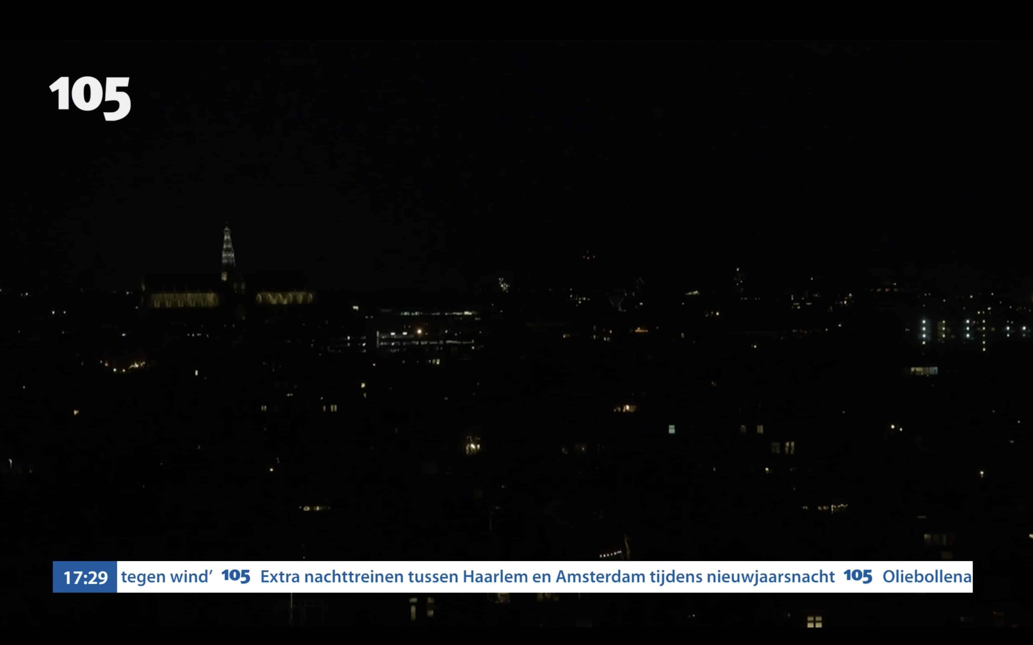 Na meerdere enthousiaste reacties op de webcam uitzending van vorig jaar is besloten de uitzending dit jaar eerder te starten en langer door te laten gaan. Vanaf 17:00 uur is de skyline van de stad live te zien en hoor je de radio-uitzendingen met het jaaroverzicht van Haarlem105. Op de beelden is nu al het eerste vuurwerk te zien.