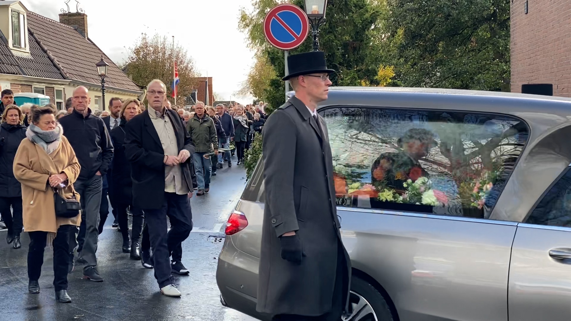 Aan weerszijde van de weg voor de Sint Adelbertuskerk vormen dorpsgenoten van Truus een erehaag. Met de familie lopen zij in de stoet naar de begraafplaats bij de Oude Kerk in het dorp, Truus haar laatste rustplaats.