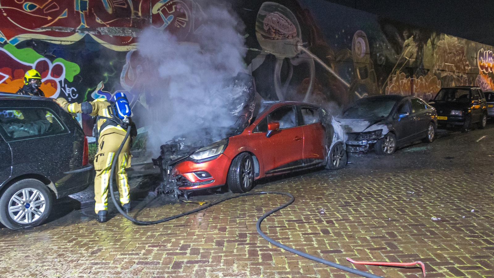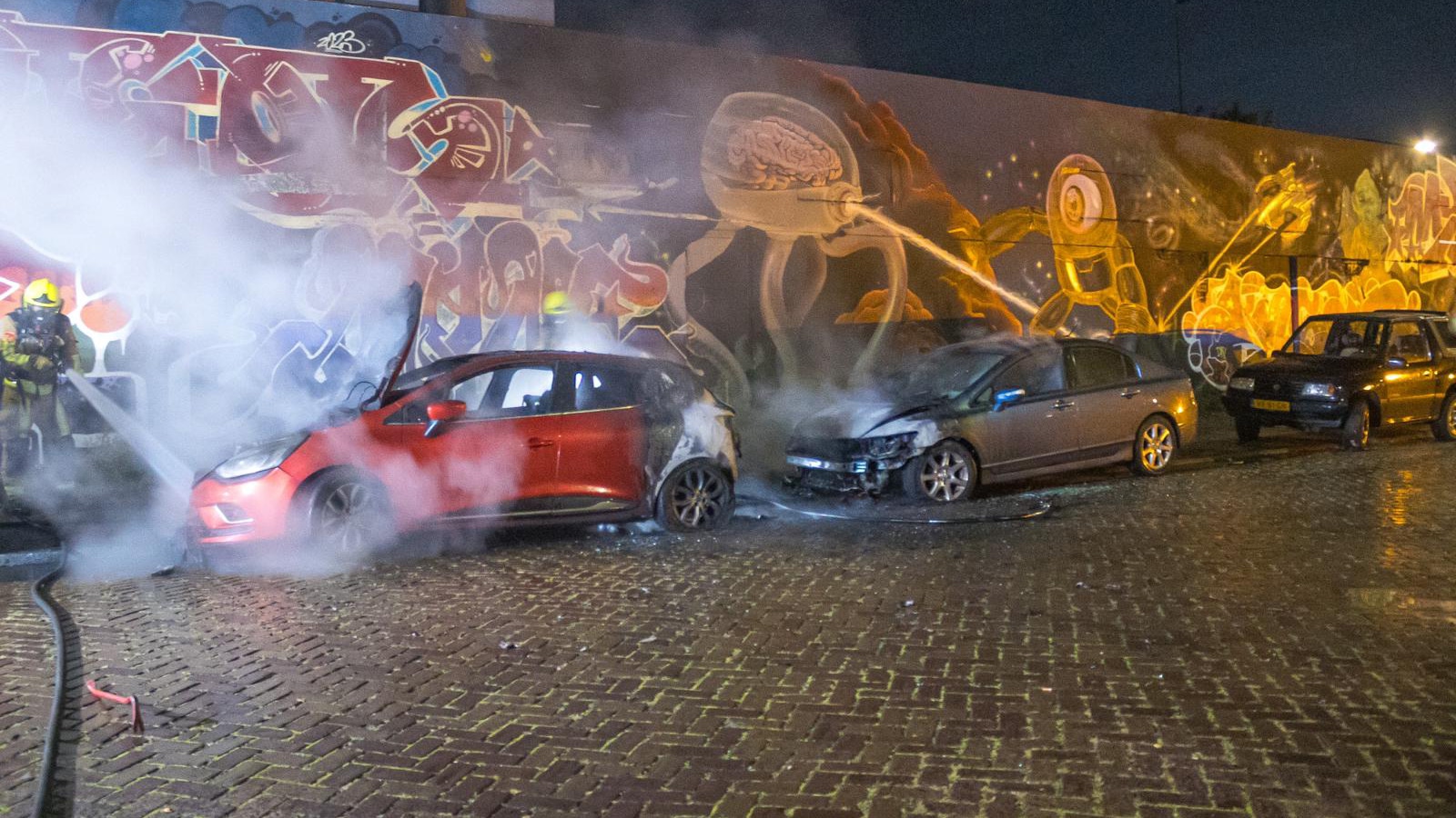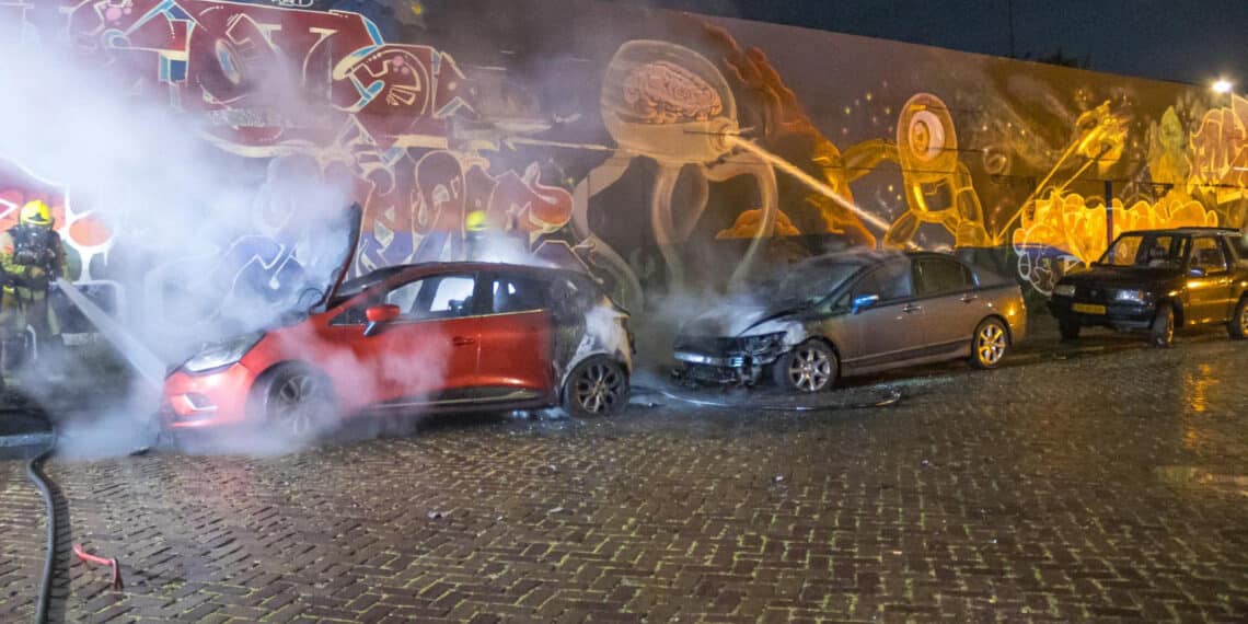 Drie auto’s zijn zondagnacht in brand gevlogen in de Werfstraat in Haarlem. Twee voertuigen brandde volledig uit, een derde raakte zwaar beschadigd. De politie vermoedt brandstichting.