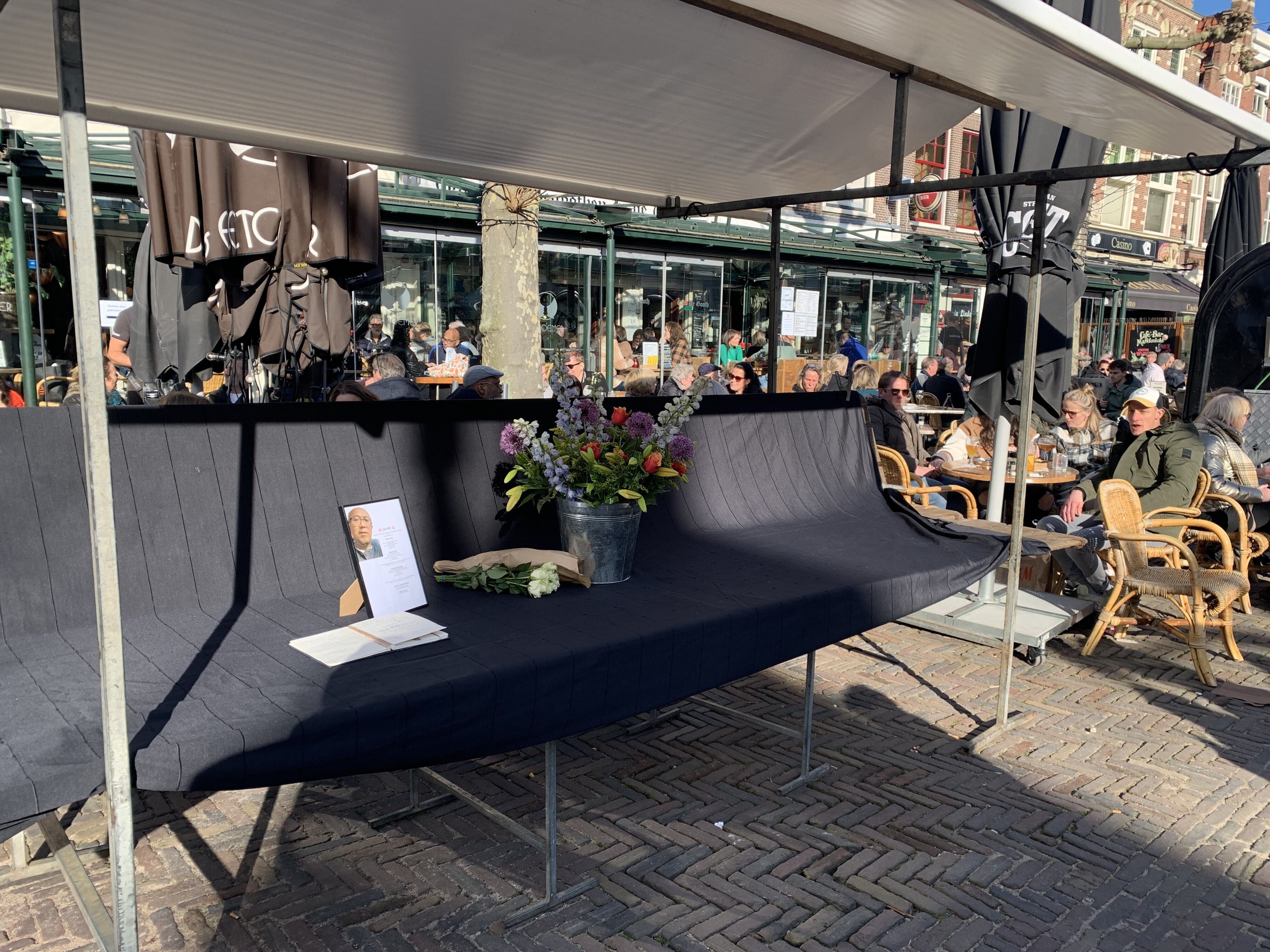 Op de plek waar de afgelopen 25 jaar wekelijks een Vietnamese loempiakraam stond op de Botermarkt, stond vandaag een kraam met een zwart kleed, een foto en een condoleanceboekje. Een eerbetoon aan de marktman (63) die plotseling overleden is aan een hartinfarct.
