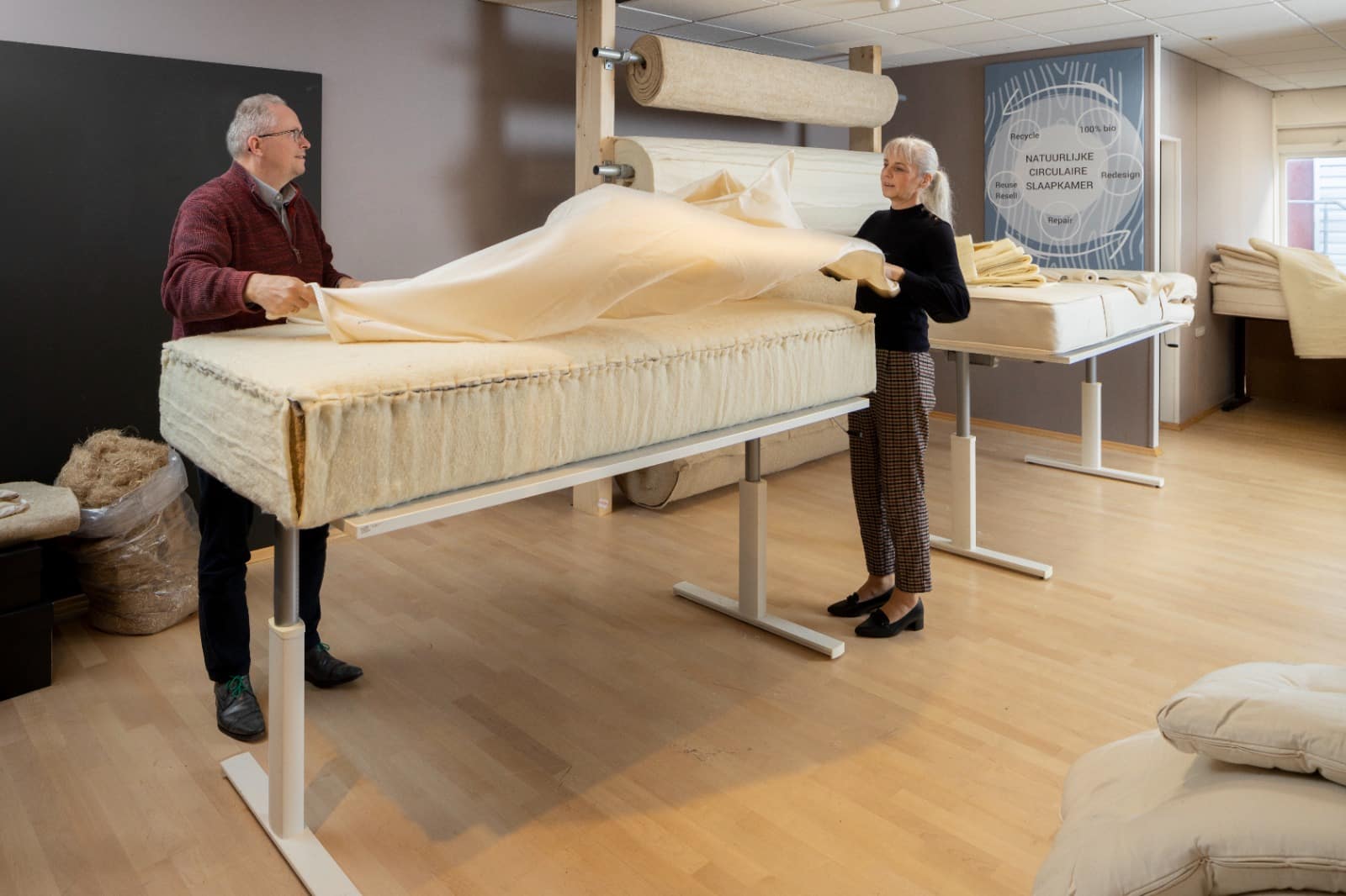 Volgens de eigenaresse zijn matrassen van schuimrubber niet duurzaam. Daarom voert zij met haar beddenzaak al langer een strijdt tegen dit type matrassen. Alle matrassen in haar zaak zij gemaakt van natuurlijke materialen, waardoor deze goed te recyclen en te repareren zijn. Ook matrassen die elders gekocht zijn kunnen bij haar worden gerepareerd. Het doel is om een universeel matrassenreparatiebedrijf te zijn. Reparaties variëren van het aanbrengen van een nieuwe tijk (de stof om het matras, red.) tot het vervangen van het veersysteem.