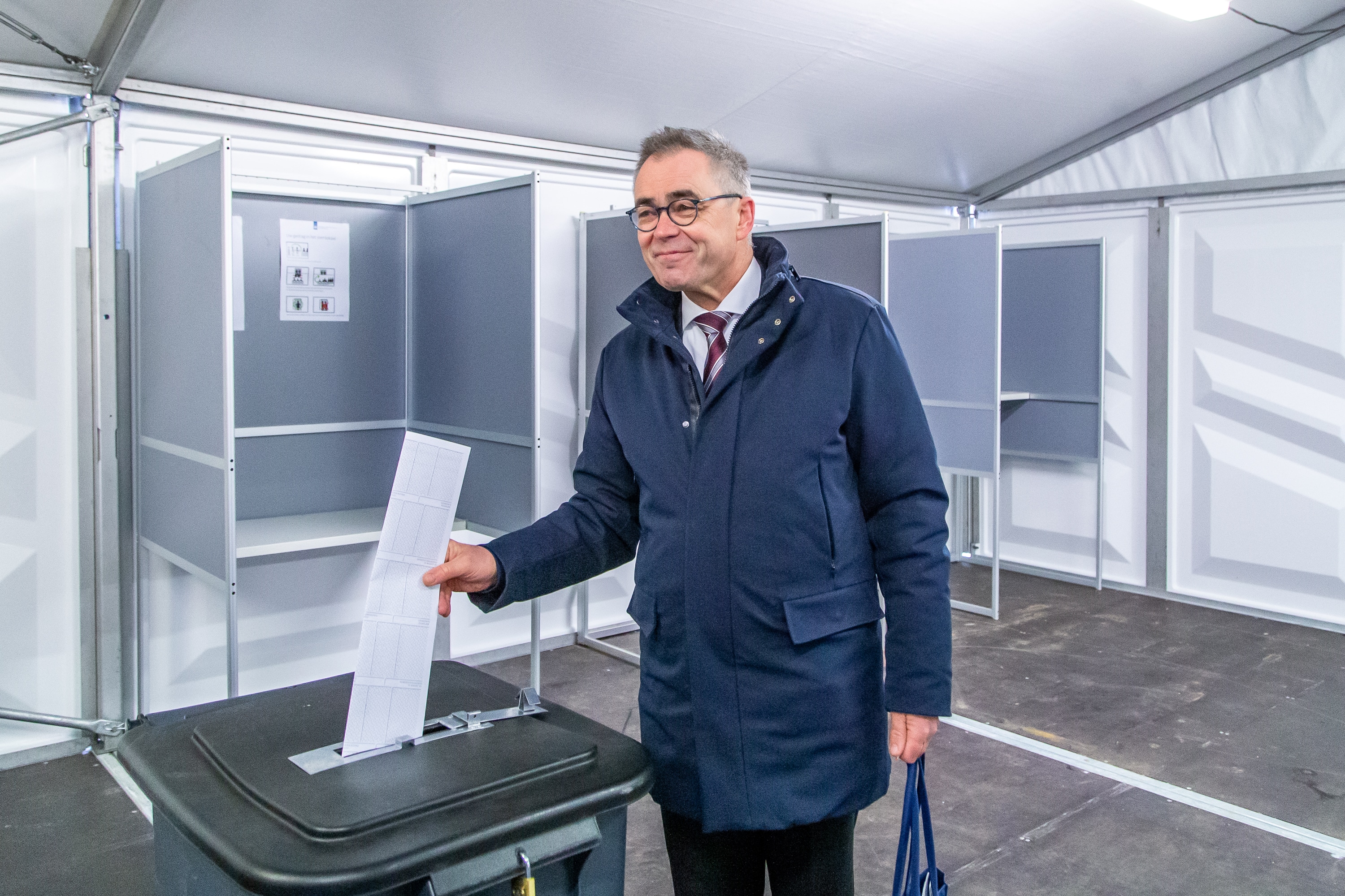 Wienen, zelf verbonden aan het CDA, heeft vanochtend zijn stem uitgebracht in een tent op het Stationsplein. Dit is één van de locaties waar het nu al mogelijk is om te stemmen. Op woensdag 16 maart kan er bij alle stembureaus gestemd worden tussen 7:30 en 21:00 uur.