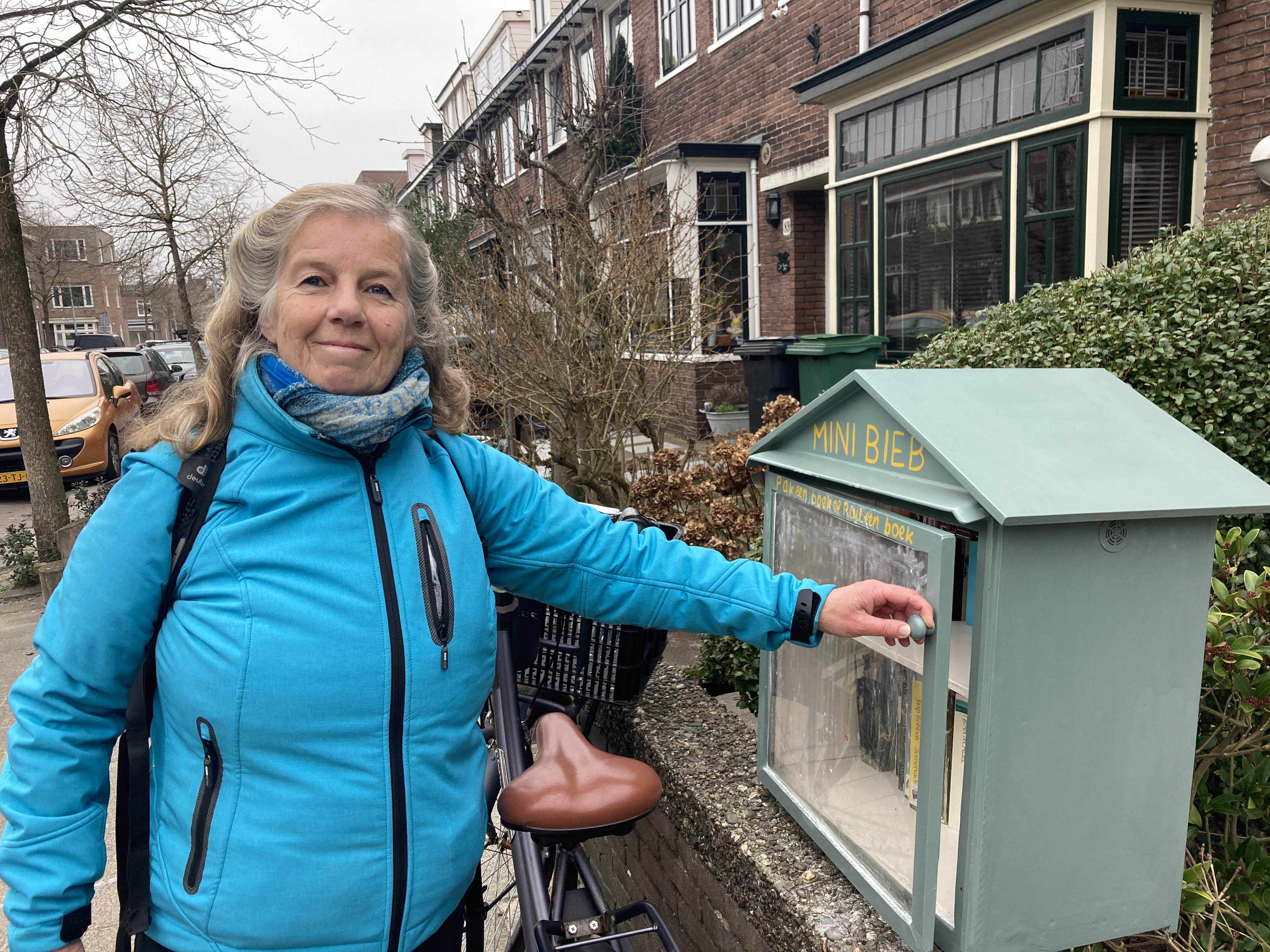 De Haarlemse Elly Stroo Cloeck wandelt elke dag door Haarlem op zoek naar minibiebs. Ze is dol op de kleine houten huisjes met boeken in voortuinen. In de afgelopen jaren telde ze er 125 in de regio Haarlem en nog elke dag hoopt ze weer een nieuwe te ontdekken. “Ik vind het fantastisch om er één te ontdekken. Andere mensen gaan winkelen, ik ga minibiebs lopen.”