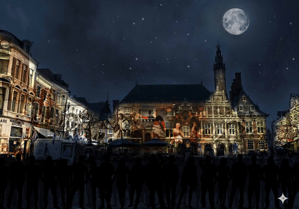 Lichtfilm op het stadshuis Afbeelding: Fier Haarlem“We vieren dan wel geen overwinning maar het is wel iets waar je fier (trots) op kan zijn.” De organisatie, gesteund door burgemeester Jos Wienen, onthulde gisteren bij de afsluiting van het 450e herdenkingsjaar van het Beleg van Haarlem de plannen voor een vierdaags stadsfestival. “Op de openingsceremonie willen wij de koning laten speechen, wij hebben het ten slotte allemaal voor de Oranjes gedaan”, vertelt Wiesehahn.