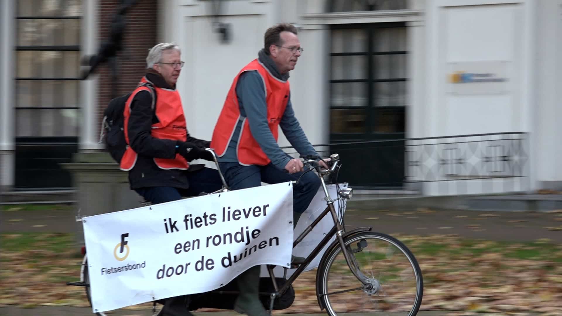 De Fietsersbond voerde gisteren actie bij het provinciehuis om aandacht te vragen voor het behoud van fietspaden in de duinen. Ze maken zich zorgen over het mogelijke verdwijnen van sommige paden en overhandigden een petitie met bijna 7.000 handtekeningen aan de provincie, voorafgaand aan de vergadering van het provinciebestuur over de beheernota van duinbeheerder PWN.