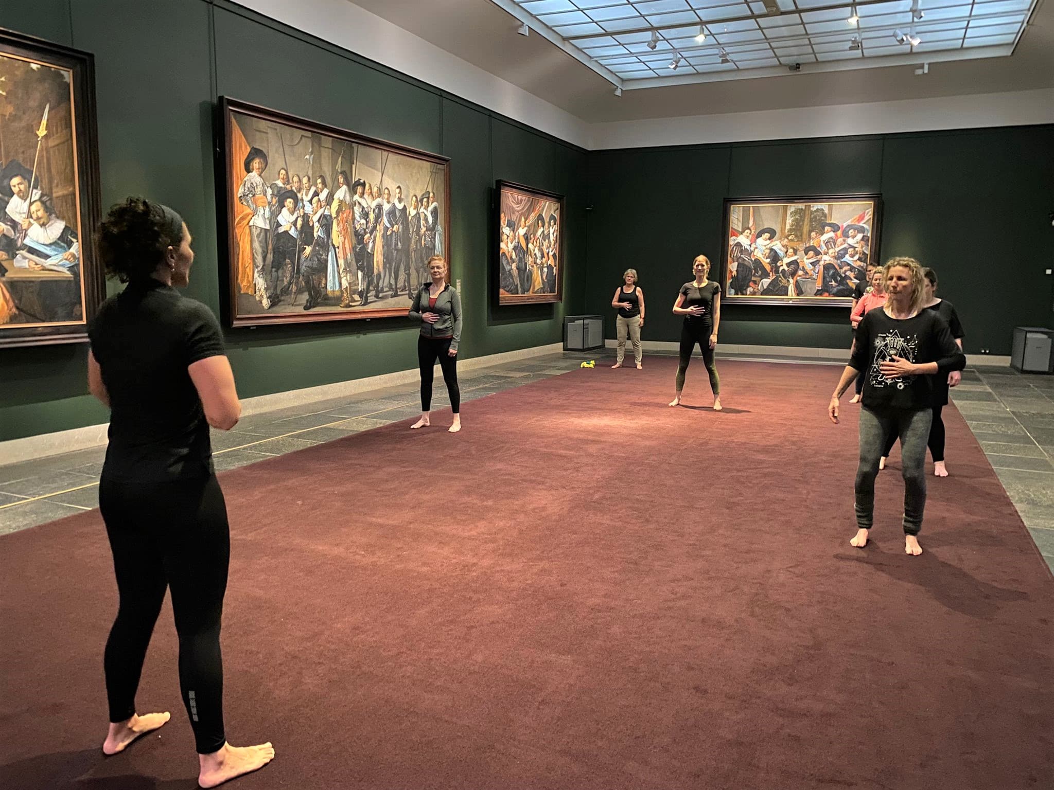 En daarom gaf instructeur Suzanne Betlem vanmorgen drie sportlessen in het museum. “Een unieke ervaring”, lacht ze. “Het is alsof ik met mijn neus in de suikerpot ben gevallen. Het is fantastisch om op deze plek training te geven en om kunst en sport bij elkaar te brengen.”