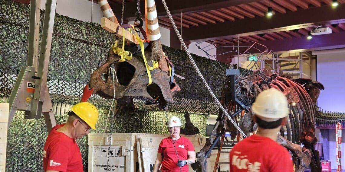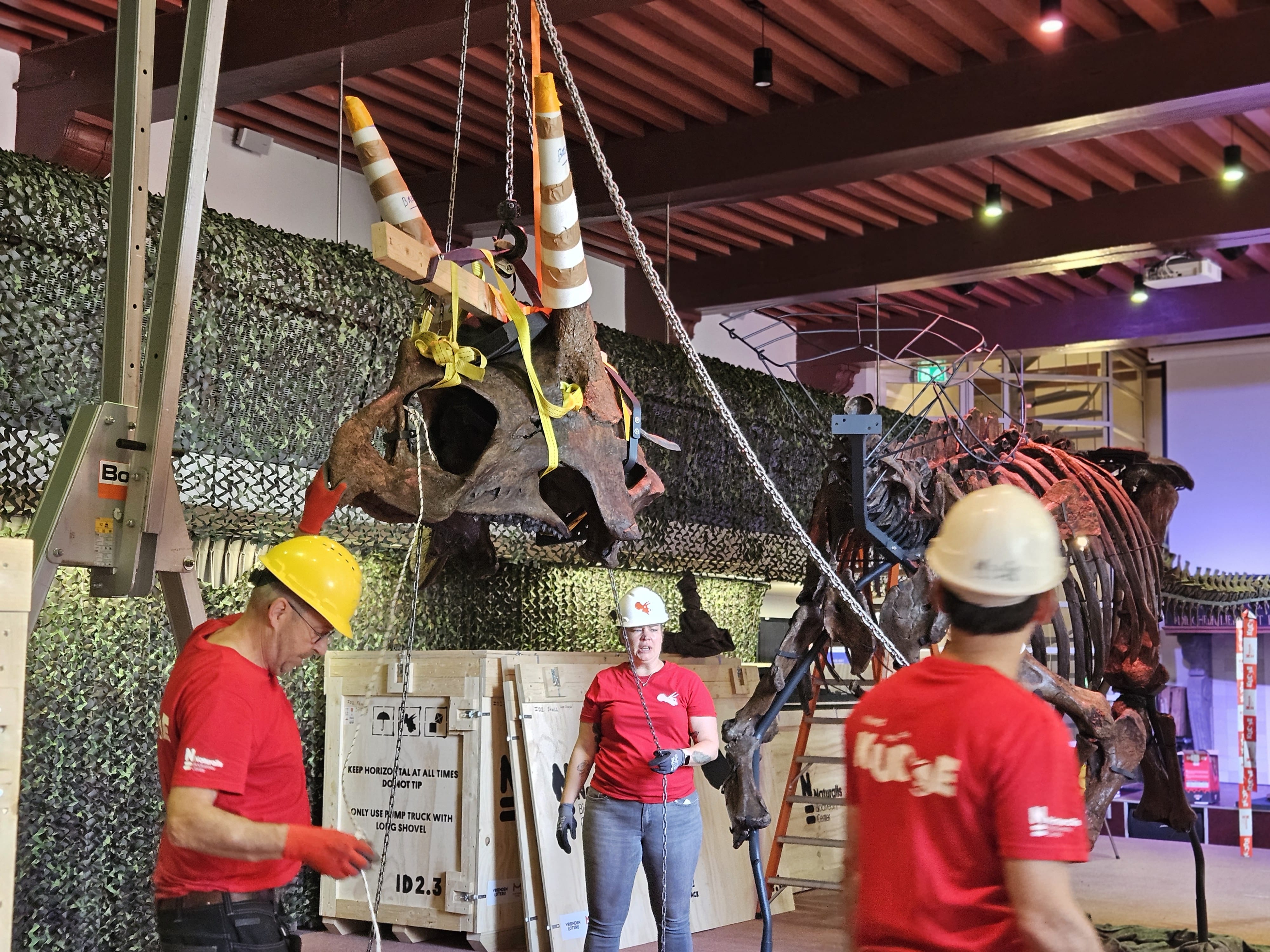Met grote voorzichtigheid, veel verpakkingsmateriaal en een industriële portaalkraan worden vandaag de laatste puzzelstukken van een echt dinosaurusskelet in elkaar gezet. Tot 14 augustus kunnen mensen deze gratis bekijken in de bibliotheek in het centrum van Haarlem. Ze verwachten grote drukte dus moet er een gratis ticket geboekt worden. Dat kan hier.