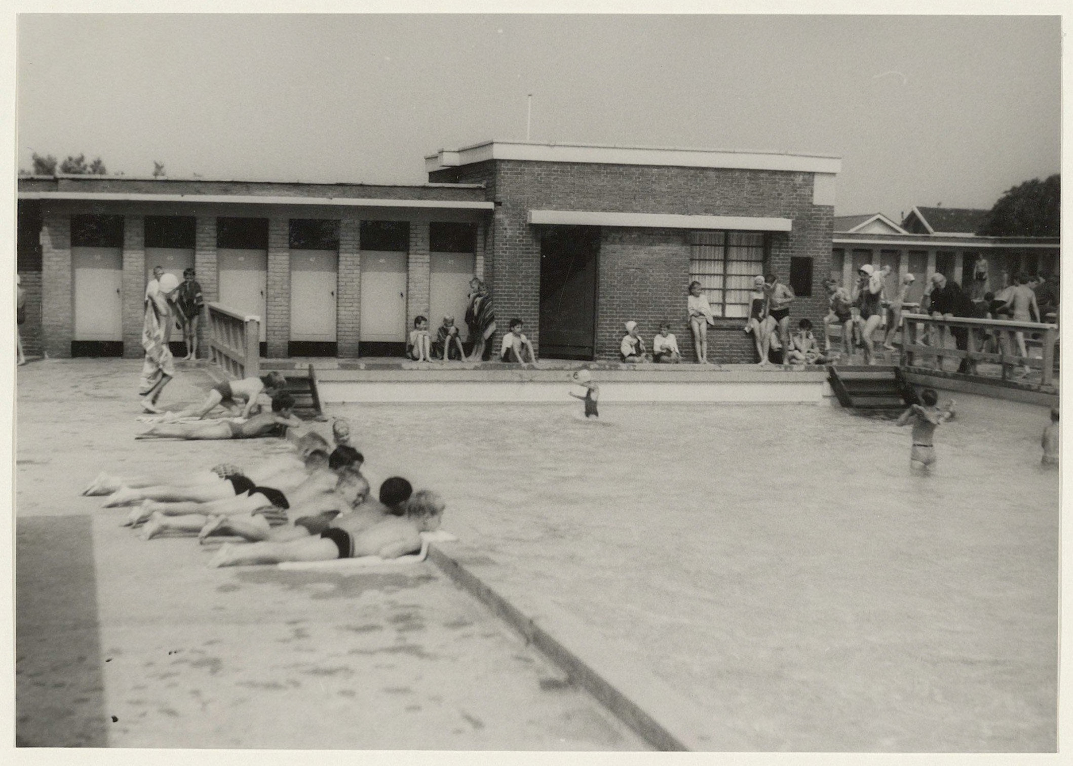 Bekijk hieronder foto’s van de bouw van het zwembad en de jaren daarna.