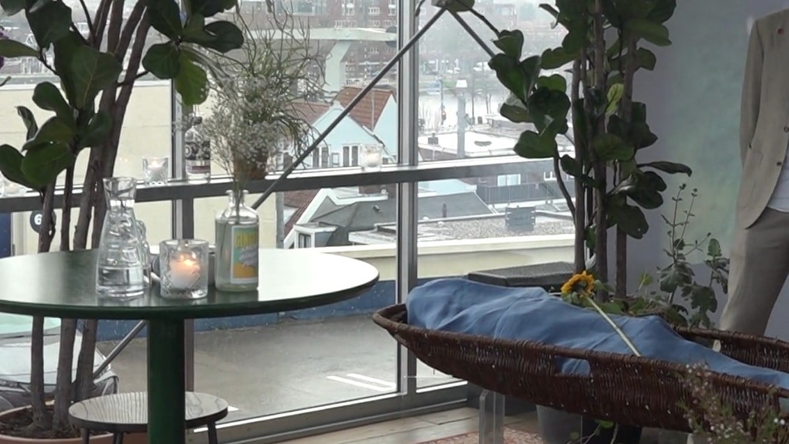 Het restaurant in een kas bovenop parkeergarage De Kamp was voor de familie de meest toepasselijke locatie waar ze afscheid wilden nemen van Rolf Baron. De rieten mand met daarin zijn lichaam was gericht naar het Spaarne waar zijn woonboot ligt.