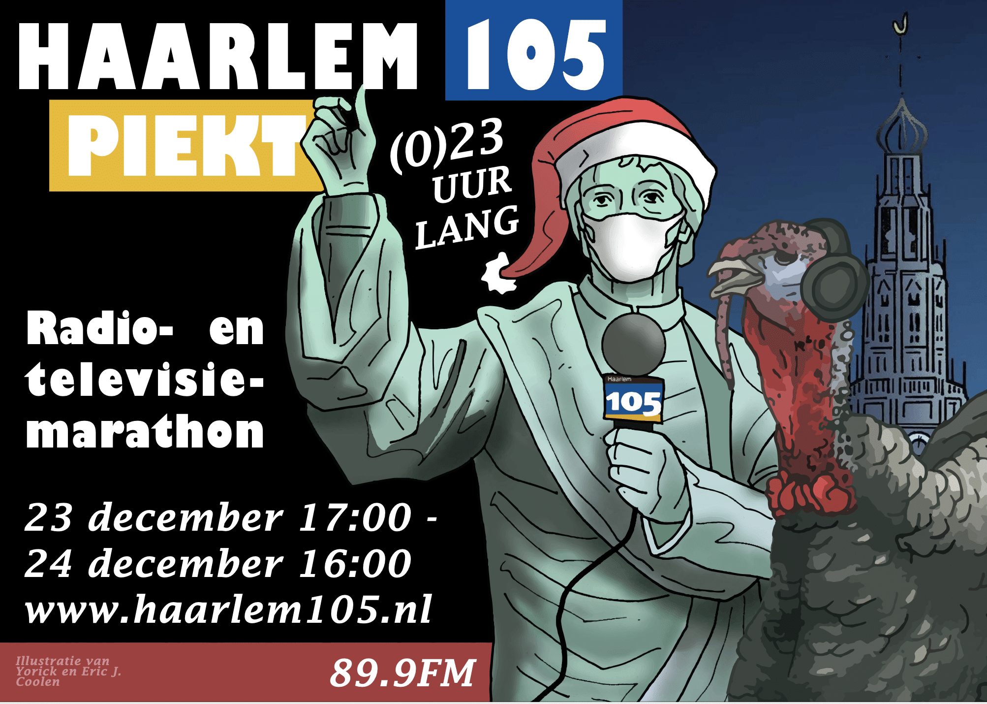 ‘Haarlem105 piekt (0)23 uur lang. Een kerstuitzending om voor thuis te blijven.’ Onder die noemer houdt streekomroep Haarlem105 op woensdag 23 december een 23 uur durende marathonuitzending om de regio in deze tijd van corona te verbinden. Nu kerst niet live en met elkaar kan worden gevierd, brengt de omroep kerst naar de inwoners van Haarlem, Heemstede en Bloemendaal toe.