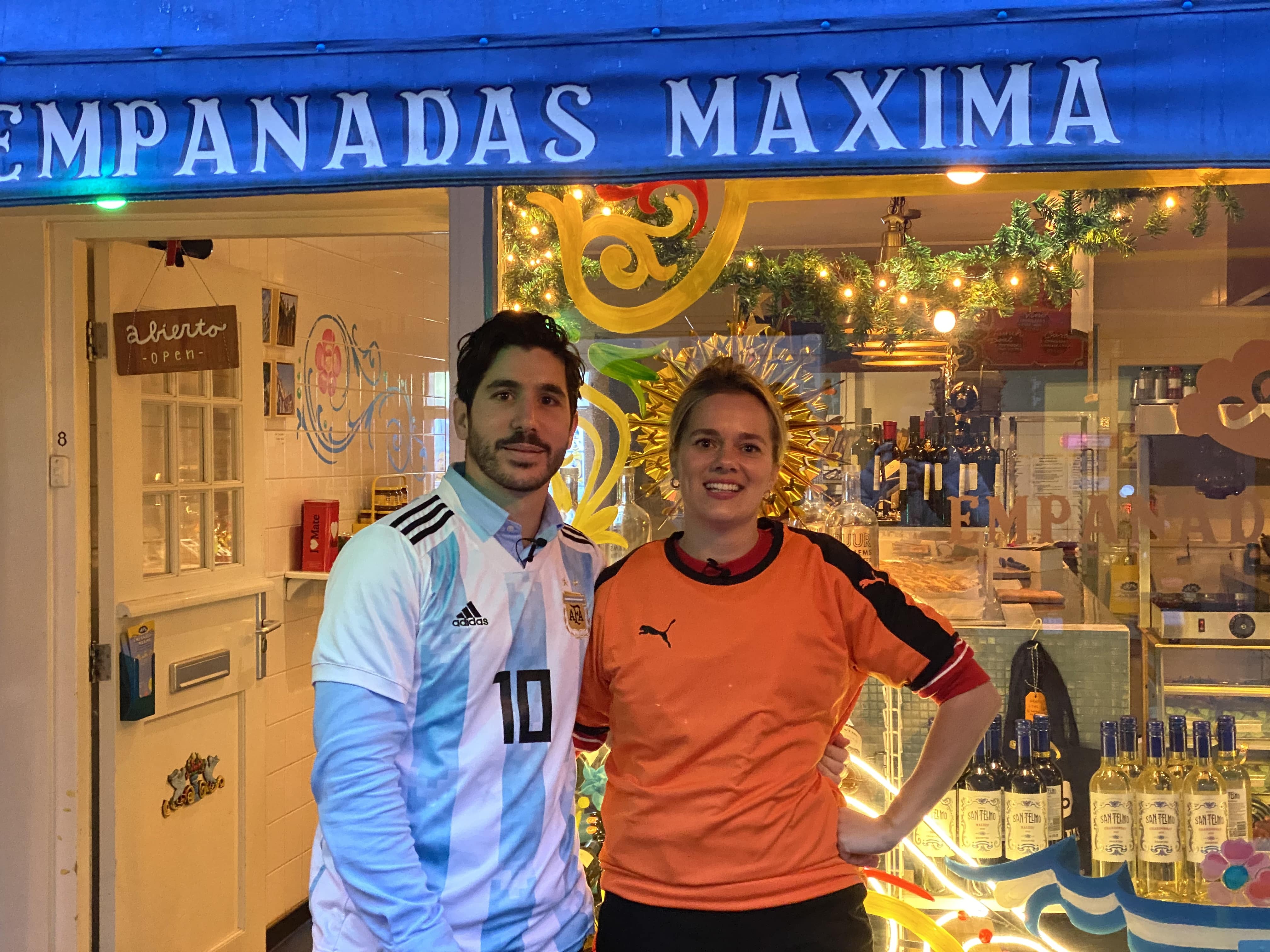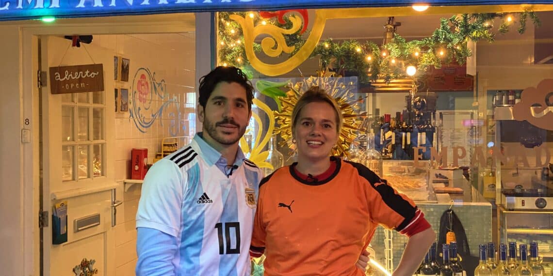 In zijn zaak ademt alles Argentinië op één ding na, zijn vrouw Myrte. “Ik juich vanavond naast Kevin gewoon voor Oranje hoor, misschien doe ik zelfs wel even extra porren”, lacht Myrte. “Messi scoort en daarna parkeren ze de bus,” voorspelt Kevin, die zich niet gek laat maken. Myrte hoopt vooral dat beide teams scoren “dan kunnen we in ieder geval beide een keer juichen.”