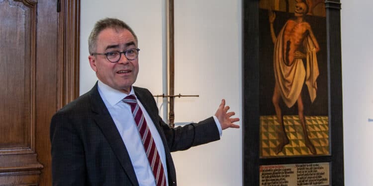 Boven de kamer van de burgemeester is ook een schedel in het houtwerk uitgesneden. Die wordt nog eens goed in de was gezet. Ook dat moet dezelfde nederige boodschap uitstralen, vertelt Wienen. En dat geldt zeker voor de bestuurders van de stad, wie dat na woensdag dan ook mogen zijn. “Wie je ook bent of wat je ook bent, uiteindelijk zijn wij allemaal sterfelijke mensen.”