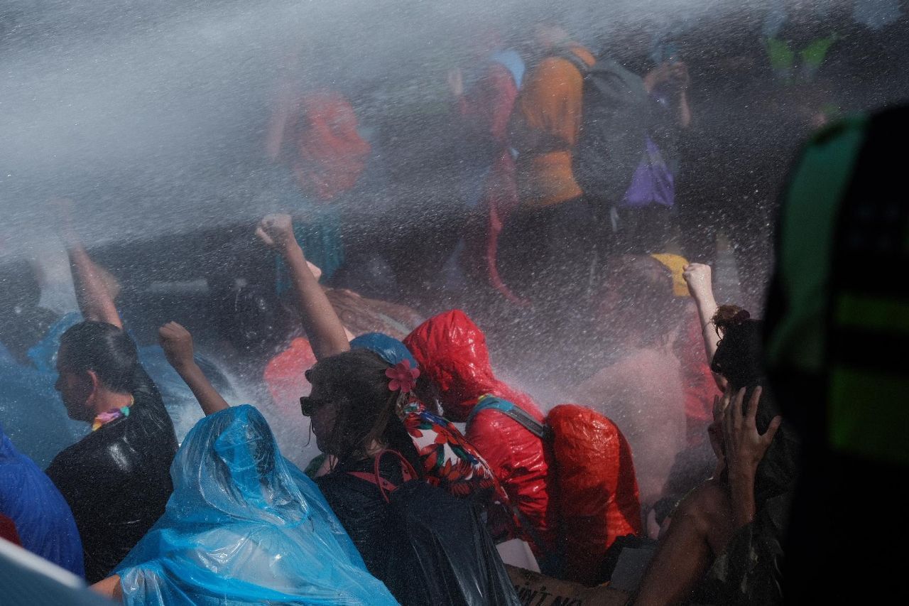 “De omsingeling duurde zo’n 20 minuten. Daarna zijn we allemaal gearresteerd. Hierbij koos ik ervoor mij slap te houden en geen medewerking te verlenen.” achteraf geeft ze aan niet blij te zijn met de manier hoe de rebellen zijn opgepakt. “De politie heeft me bij mijn been gepakt en een polsklem om beide polsen gedaan, wat volgens mij niet mag. Verder hebben ze me aan mijn bovenarmen proberen op te tillen.” Tromp vertelt dat het aanbrengen van de polsklem volgens haar disproportioneel geweld is in zo’n situatie.
