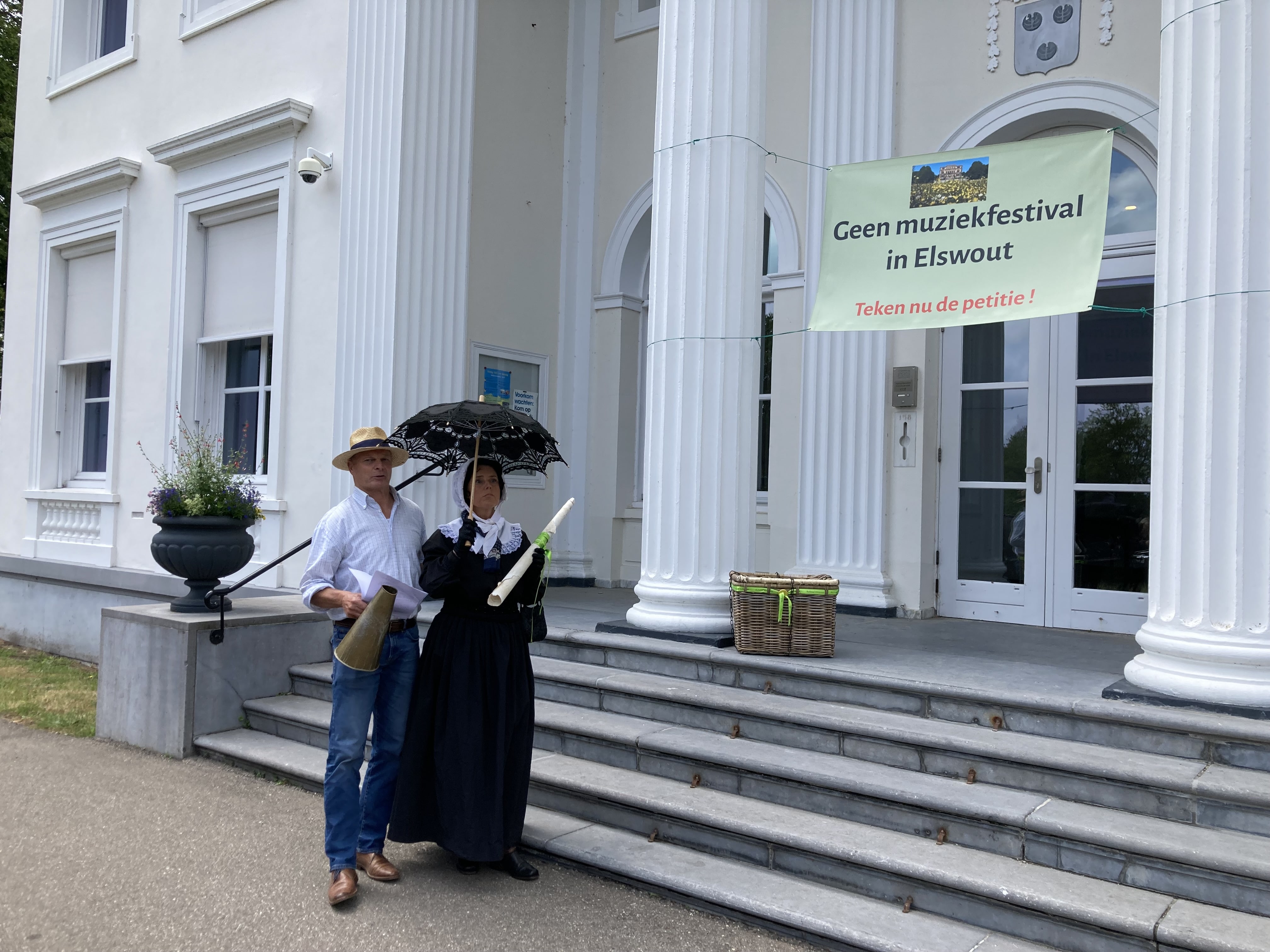 De petitie werd dinsdag op ludieke wijze overhandigd aan wethouder De Roy van Zuidewijn-Rive. Namelijk door een dame verkleed als mevrouw Borski, die per koets bij het gemeentehuis verscheen. Naast de handtekeningen kreeg de wethouder ook een foto van landgoed Elswout met op de voorgrond een zee van bloemen, wat de wethouder wel kon waarderen.