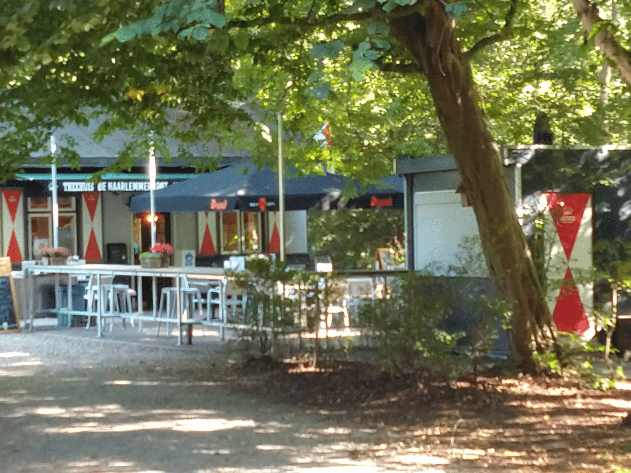 De locatie, schuin tegenover het Provinciehuis Paviljoen Welgelegen, is omringd door monumentale bomen van het historische park. Vanaf het terras kijk je uit op het Hertenkamp. Het stadspark, ook bekend als De Hout, in de huidige vorm dateert uit 1830. Het is ontworpen in Engelse landschapsstijl. In de Gouden Eeuw was het park in trek bij welgestelden uit Haarlem en Amsterdam. Nu is het in trek bij jong en oud. Geregeld worden er concerten gegeven, en duizenden muziekliefhebbers komen er op 5 mei genieten van Bevrijdingspop.