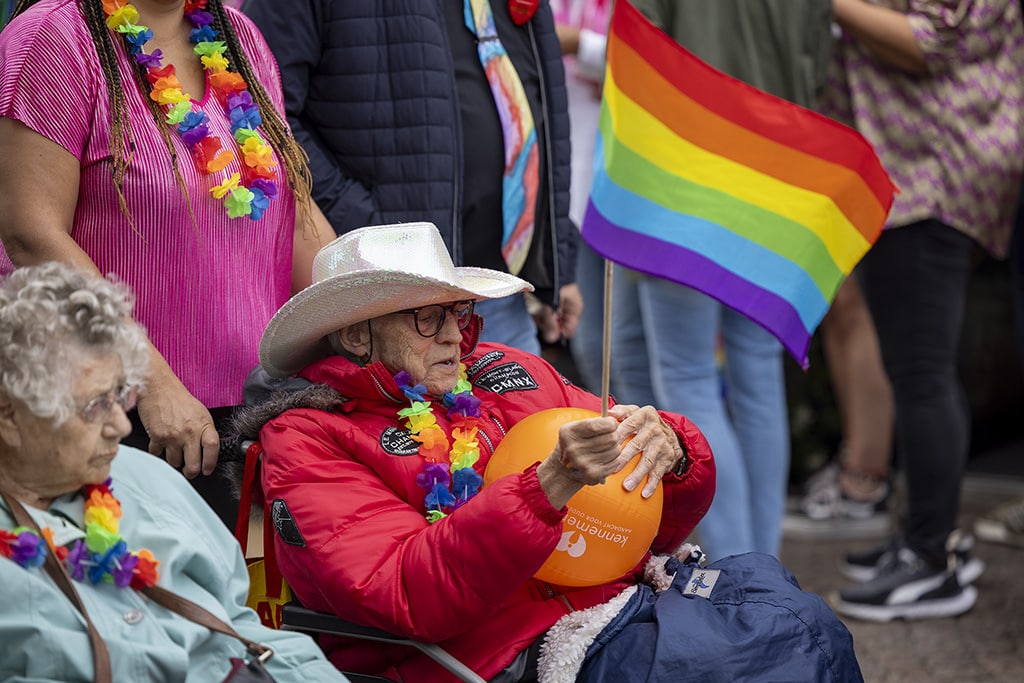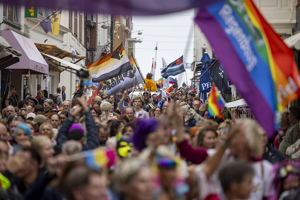 Onder hen ook burgemeester David Moolenburgh. Hij vertelt bij de start van de parade dat de mannen die afgelopen weekend regenboogvlaggen vernielden hard gestraft worden. “Er is sprake van discriminatie en daardoor is er strafverzwaring.” Ondanks het incident spreekt hij verder over een mooi evenement.