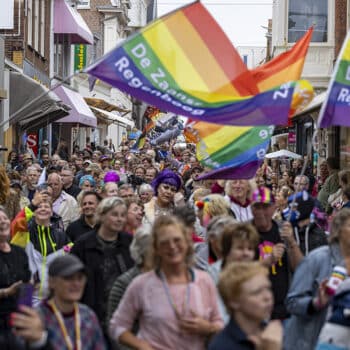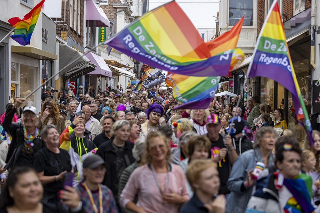 Tot en met morgen wordt in Zandvoort voor de zevende keer Pride at the Beach gevierd. Al de hele week zijn er activiteiten in het dorp en hangen er vlaggen. Afgelopen weekend zijn drie van die vlaggen vernield, inmiddels hangen er weer nieuwe regenboogvlaggen, net op tijd voor Zandvoorts eigen parade. Honderden mensen trotseerden vandaag de kou om mee te lopen.