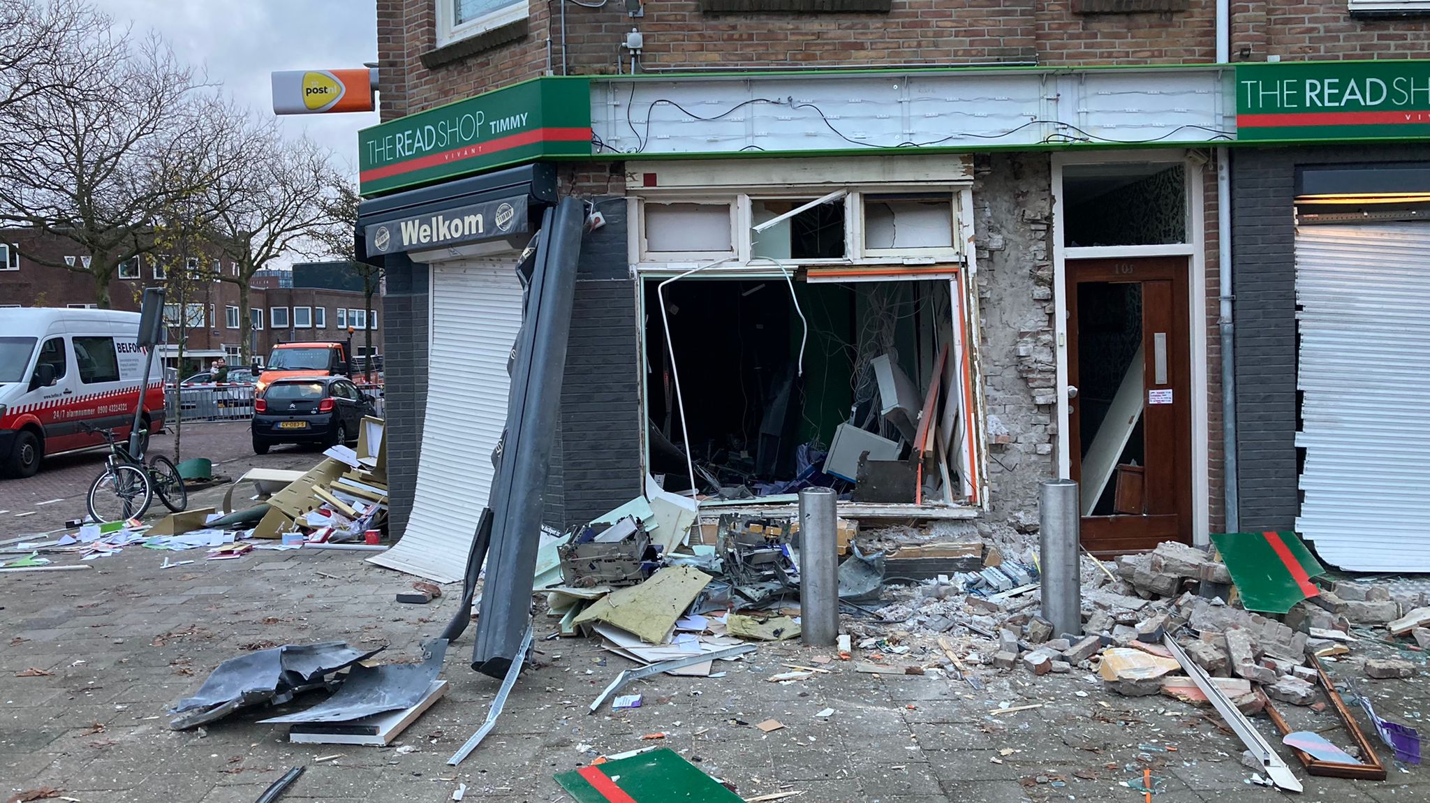 Op beelden van een videodeurbel aan de overkant is te zien hoe twee mannen in de nacht van zondag op maandag een explosief plaatsen bij de zaak. Niet lang daarna vindt er een grote explosie plaats en vult de straat zich met rook. Daarna volgt er een tweede knal.