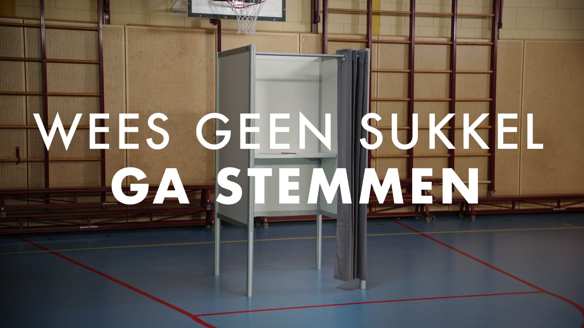 De jonge videomakers bedachten een slogan: ‘Wees geen sukkel, ga stemmen op 17 maart’. Bekijk de video