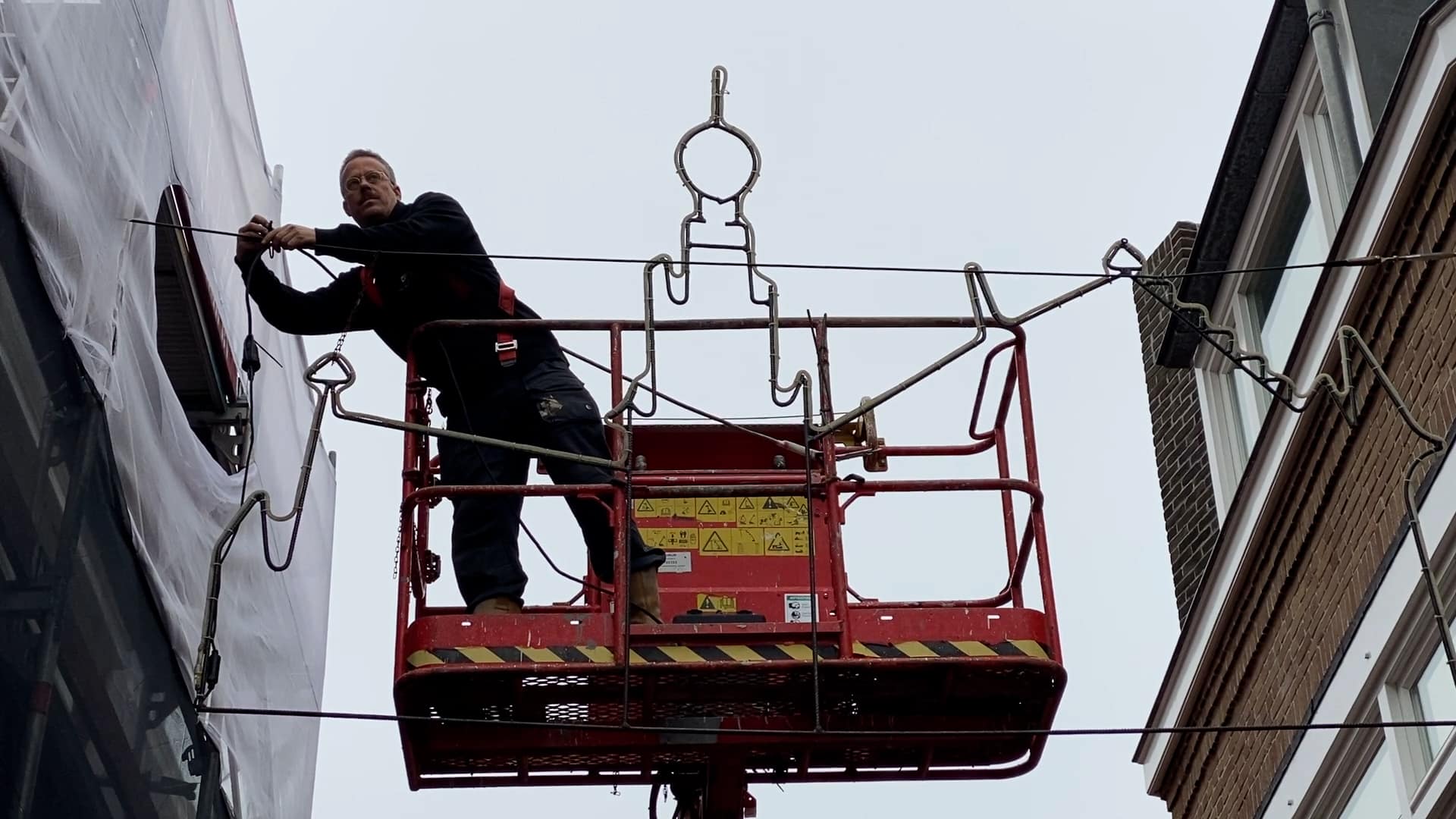 Bekijk in de reportage hieronder hoe de verlichting jaarlijks opgehangen wordt.