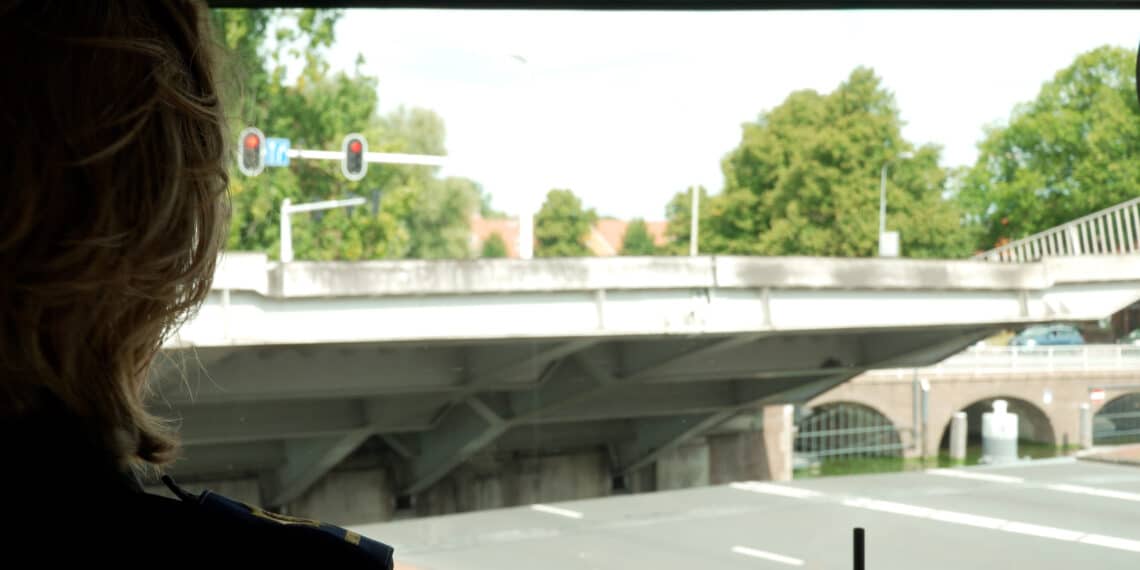 “De brug kan per keer maximaal vier minuten open”, legt Céline uit. “Daarna wil ProRail dat de spoorbrug weer in gebruik wordt genomen.” Dat zorgt regelmatig voor stress, want in die korte tijd moeten zoveel mogelijk boten door.