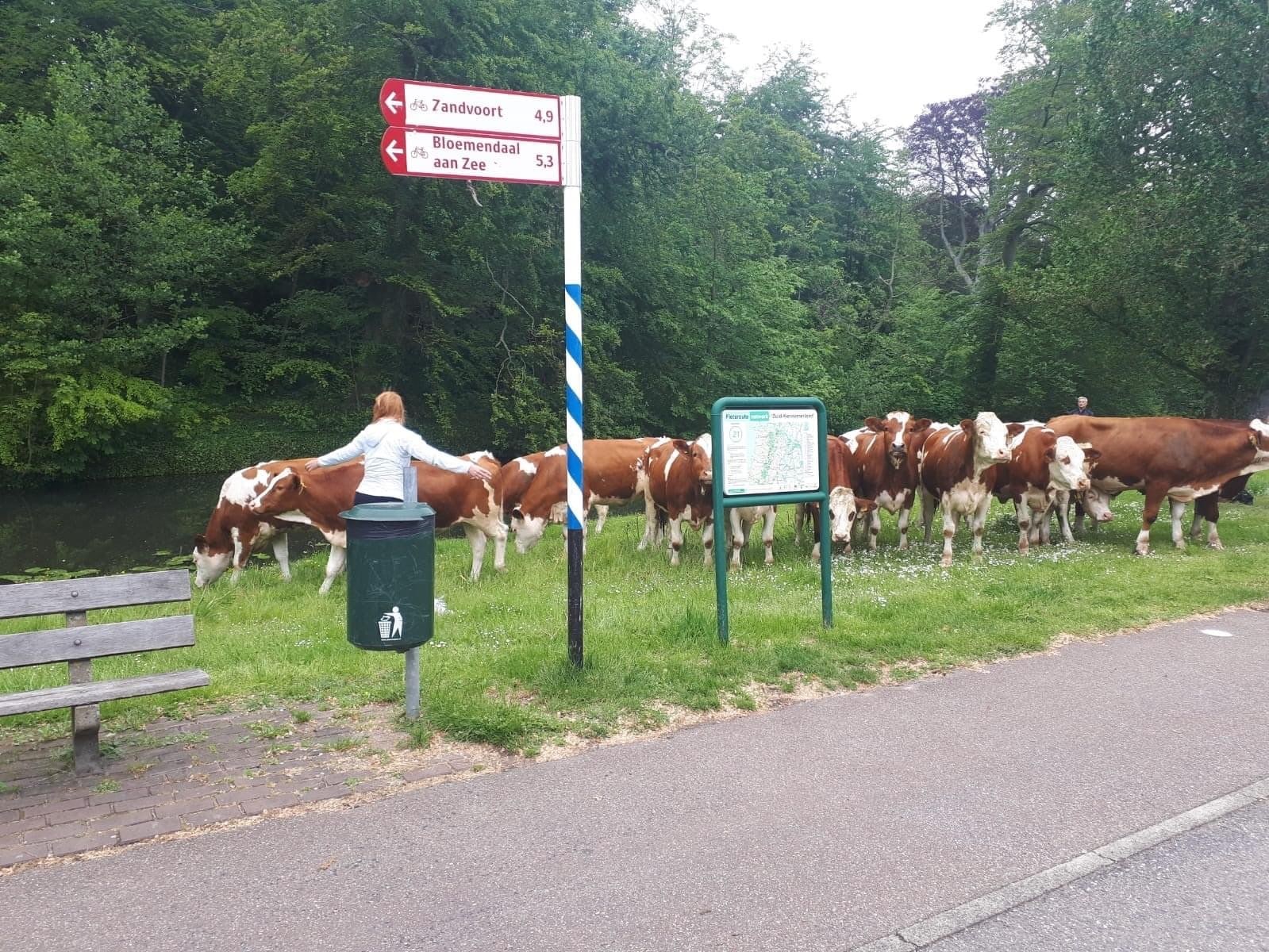 Een opvallend gezicht vandaag in Overveen. Er werd een groep van vijftien koeien gesignaleerd op de Elswoutslaan, de dieren waren ontsnapt uit het weiland. De kudde liep als groep richting de Duinlustweg.