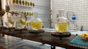 Kunstenares Bethany de Forest doet ook mee aan de expositie. Ze heeft een miniatuur-wasstraat gemaakt, waar kleine paaskuikentjes worden gewassen. Daar heeft ze ook een stop-motion animatie van gemaakt, die centraal in de Vishal wordt afgespeeld. “Het zijn normaal gewone pluizenbolletjes, maar als je ze nat maakt worden het ineens hele grappige gekke karaktertjes.” Op een luchtige manier is het ook een kritische verwijzing naar de bio-industrie.