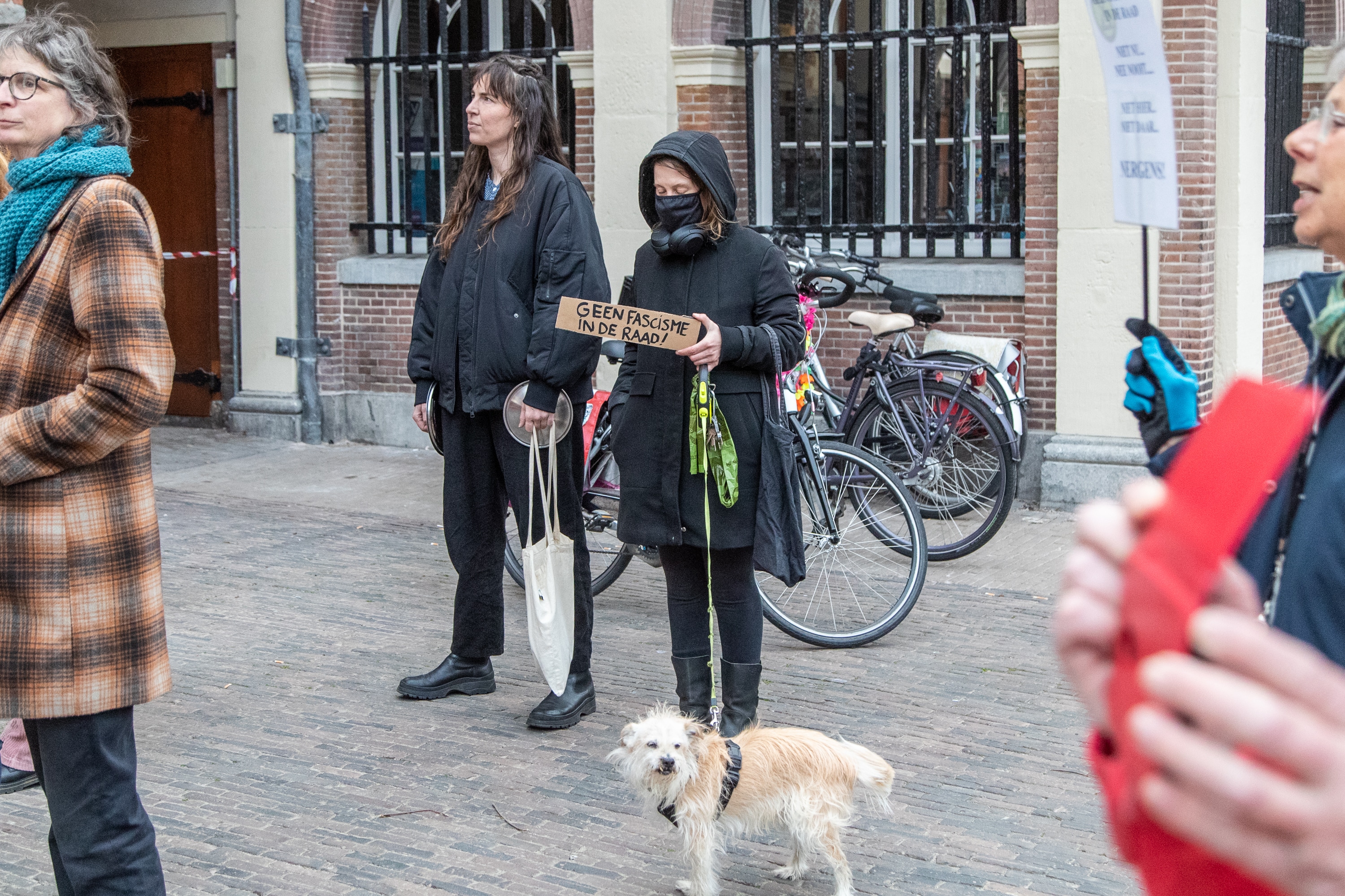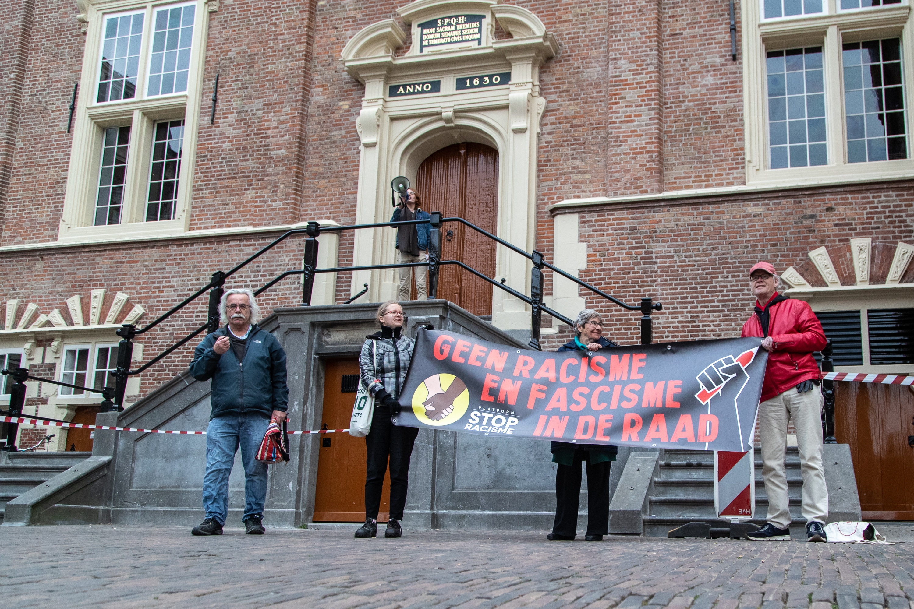 Voorafgaand aan de installatie van de nieuwe gemeenteraad heeft een handjevol Haarlemmers voor het stadhuis gedemonstreerd tegen racisme en fascisme, nu Forum voor Democratie in de raad is verkozen. Ze verstoorden ook het begin van de speciale raadsvergadering voor de deur van de raadszaal met toeters, bellen en luid geroep.