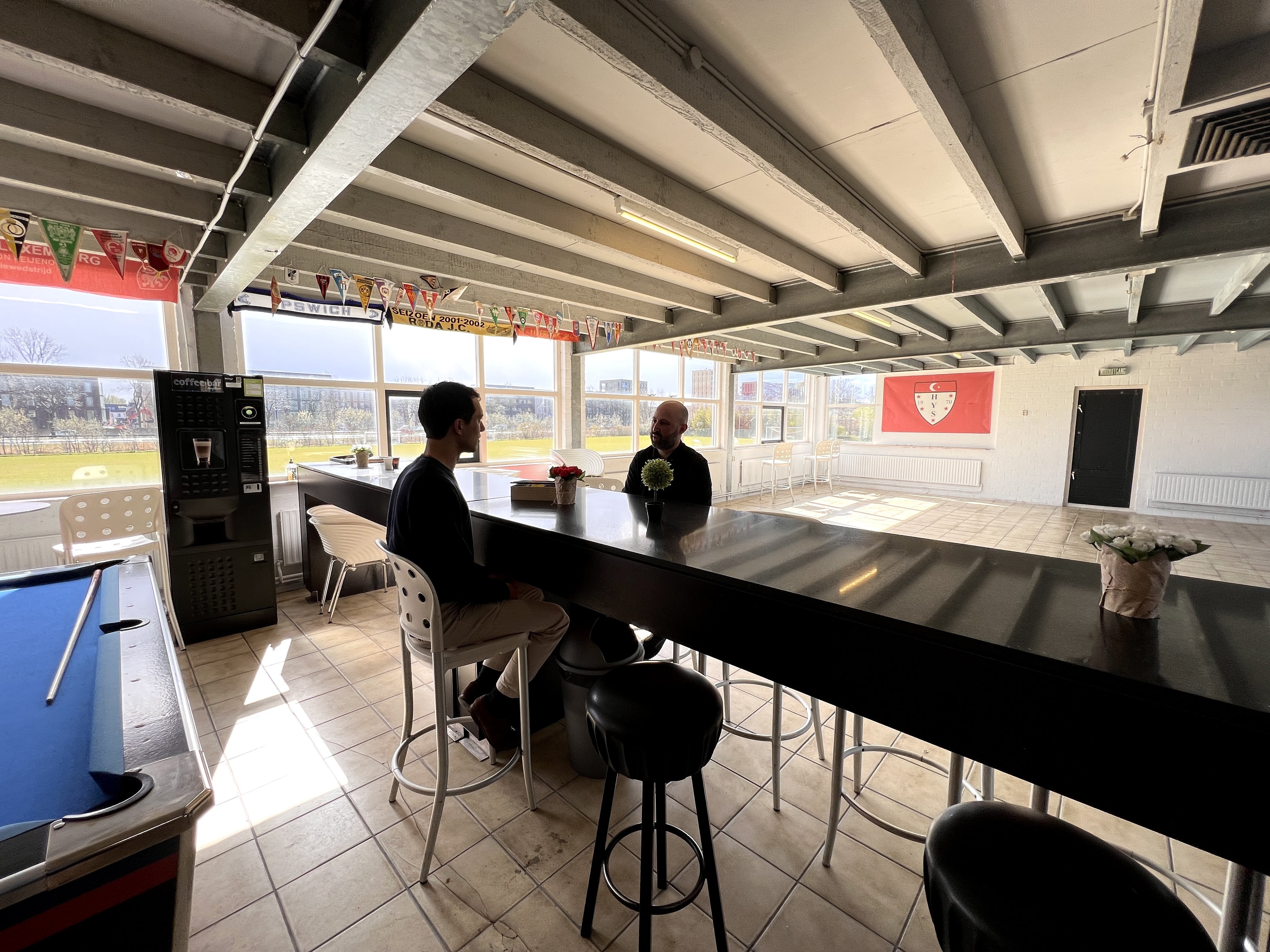 De cornervlaggen wapperen straf in de wind, een vrijwilliger controleert het gras van het voetbalveld van Yildiz Spor in Haarlem. In de kantine hangt een clubvlag aan de muur, de barkrukken staan er verlaten bij.