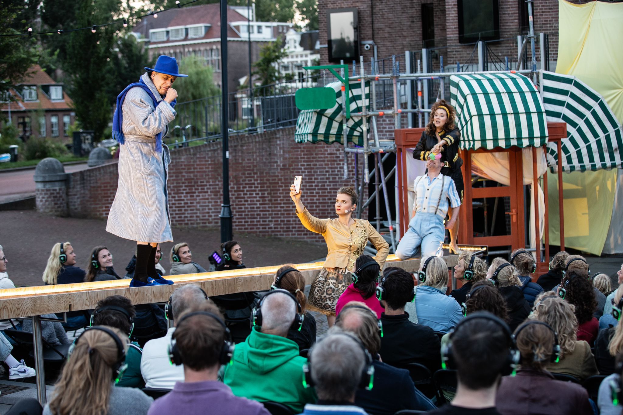 Bijzonder aan de voorstellingen is dat ze niet in, maar voor de schouwburg plaatsvinden. “In al die jaren is het een keer voorgekomen dat we een voorstelling naar binnen moesten verplaatsen”, vertelt de actrice. “We spelen in principe altijd door, ook als het regent. Alleen als het echt gevaarlijke toestanden oplevert laten we een show niet doorgaan of verplaatsen we het tijdstip. Maar we verwachten niet dat het nodig gaat zijn.”