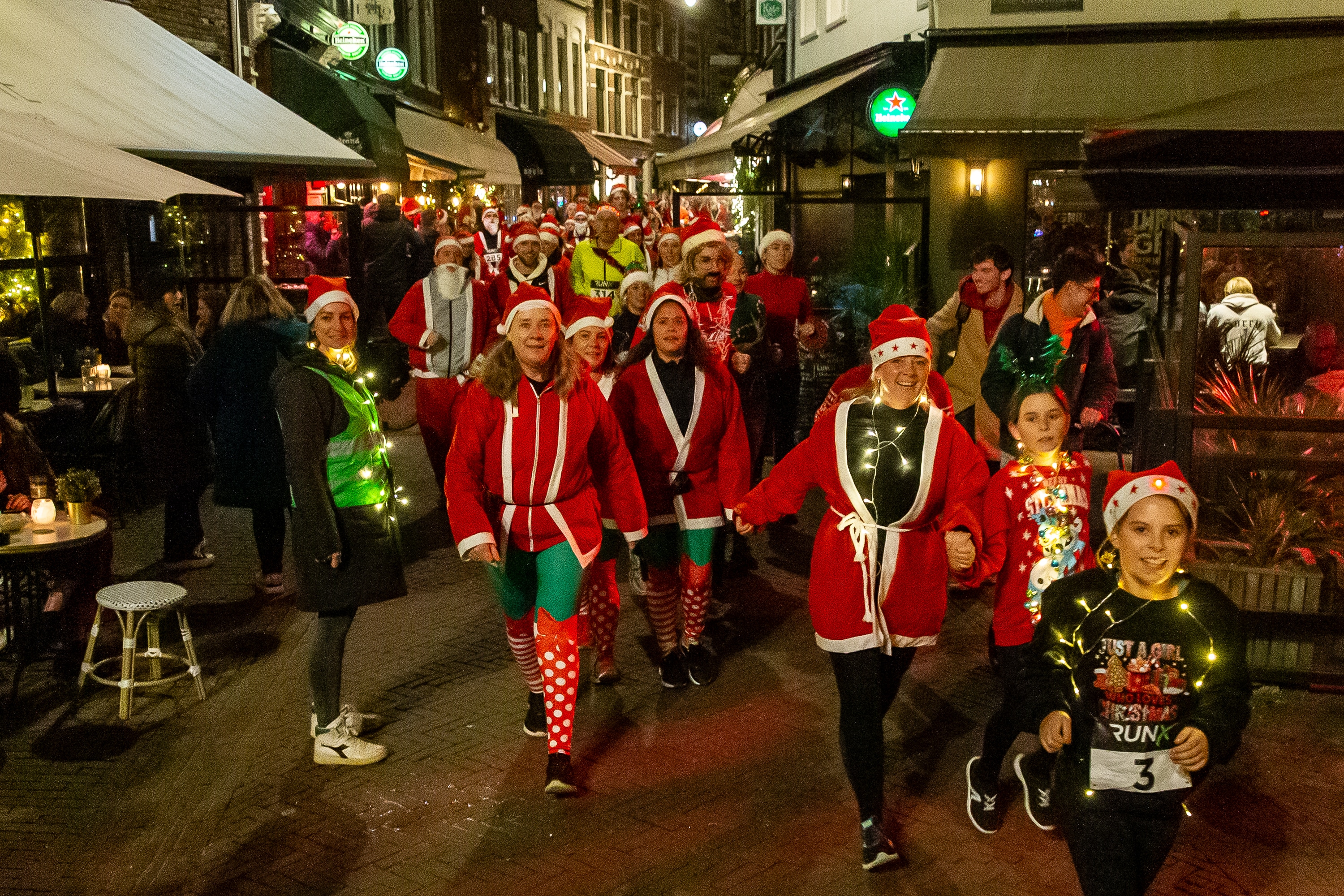 Vorig jaar ging de Santa Run op het laatste moment niet door vanwege gladheid. De edities daarvoor werden door corona afgelast. Dit jaar was het daarom extra feestelijk: “Na drie jaar eindelijk weer een Santa Run, waar gerend mag worden”, klinkt het door de speakers waarna gejuich begint. Dany Hanusch van de organisatie heeft er veel zin in. “Het organiseren komt wat traag op gang, maar aan het eind heeft iedereen de Santa Run-bibbers.” Kijk hieronder naar een sfeer reportage van de run: