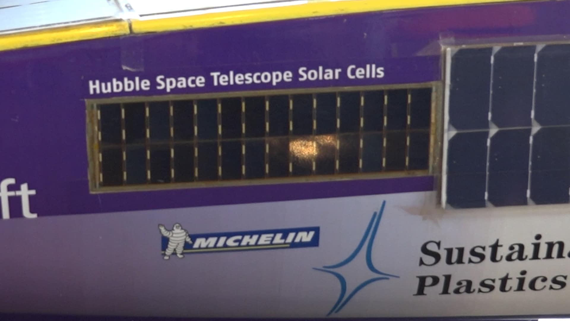 De Nuna 1 heeft wel een aantal speciale zonnecellen. “Deze komen echt uit de ruimte”, zegt Kees wijzend naar een aantal zonnecellen. “Via Wubbo Ockels, die het team begeleide, zijn deze gedoneerd. Ze komen van de Hubble Space Telescope af. Deze zijn in 1993 vervangen en met een spaceshuttle terug op aarde gekomen.”