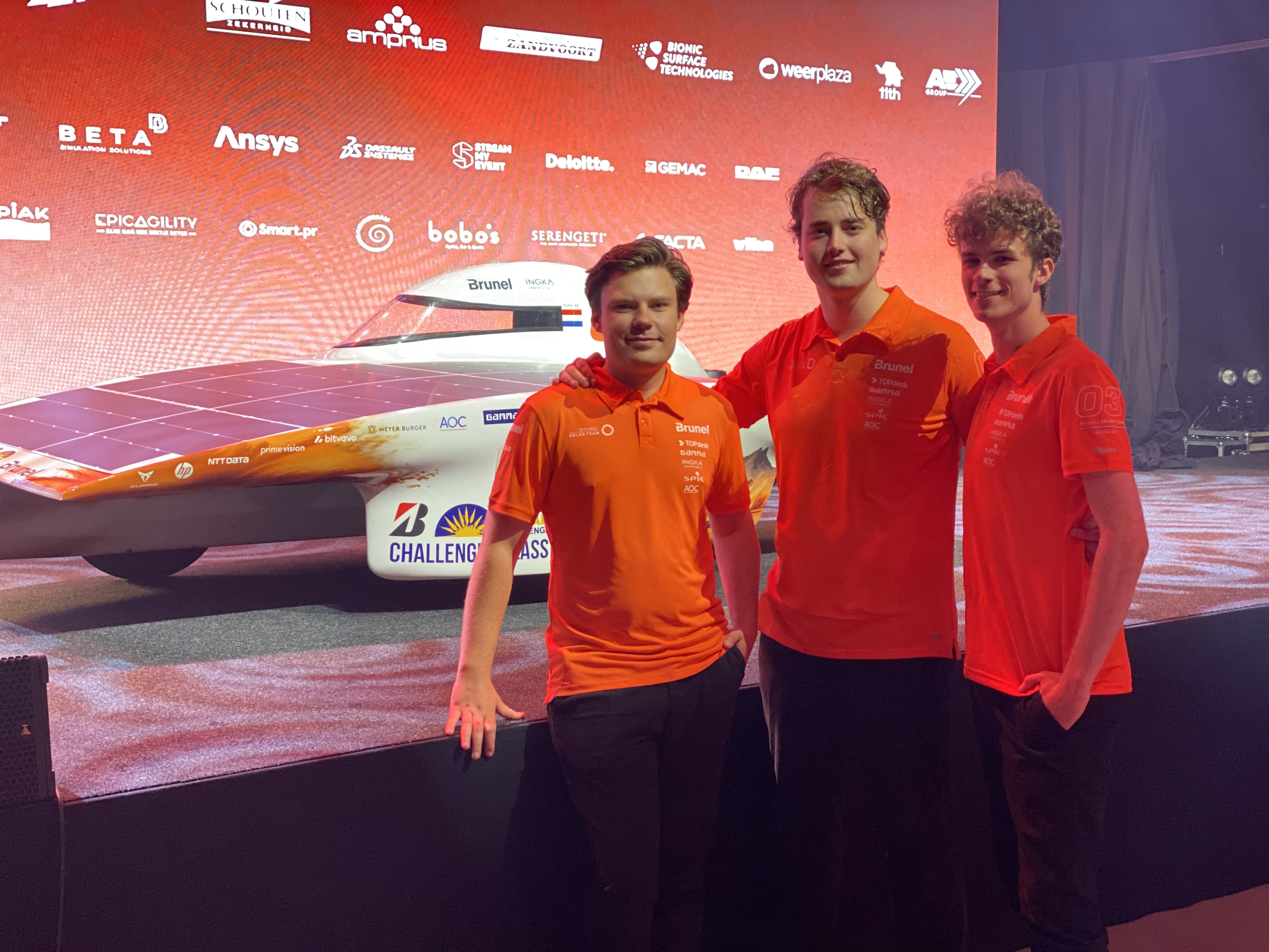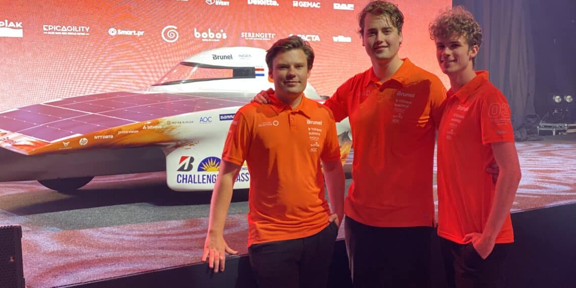 Van de 18 studenten die in het Brunel Solar team werken aan de nieuwe zonneauto komen er drie uit Zuid-Kennemerland. Vandaag zijn ze met gezonde spanning naar de presentatie van de nieuwe auto Nuna 12 gekomen. “We hebben het een jaar lang geheim moeten houden voor familie en vrienden eindelijk hoeven we er niet meer zo om heen te praten”, legt Tijn van Weel uit.