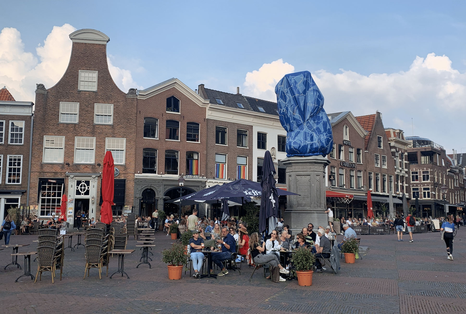 Het is nog altijd niet duidelijk waarom het beeld van Laurens Janszoon Coster op de Grote Markt in Haarlem is ingepakt. Een van de betrokkenen laat weten dat er pas over twee weken bekend wordt gemaakt waarom het beeld verstopt zit onder een blauw zeil.