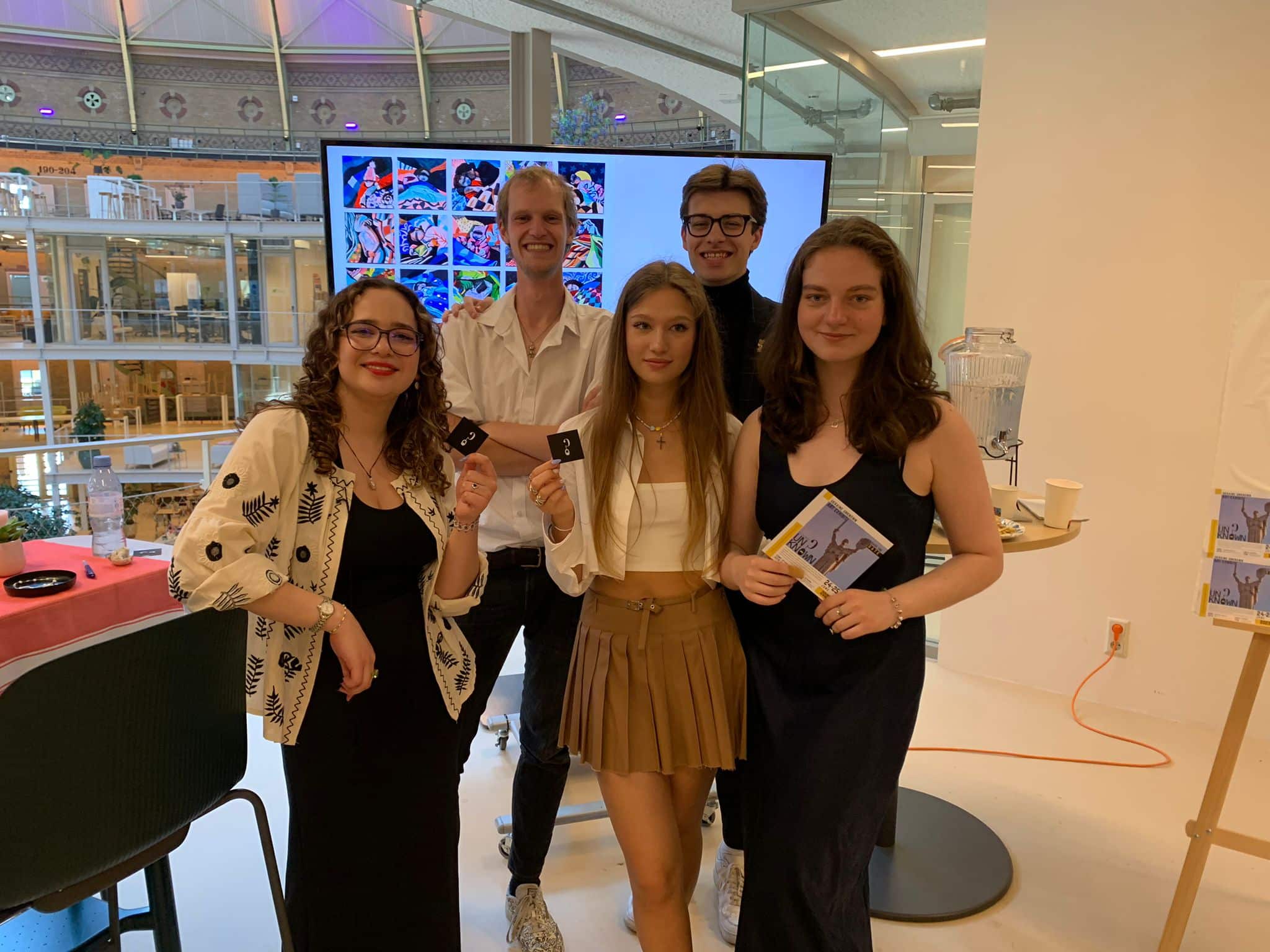 De groep bestaat uit vijf studenten die niet van plan zijn om na deze expositie te stoppen. “We willen onbekende artiesten een podium geven, elke expositie in een ander thema rond een wereldprobleem”, vertelt Anna. De expositie draagt de naam Exhibit Unknown “via Instagram gaan we updates geven over nieuwe tentoonstellingen”, meldt Max erbij.