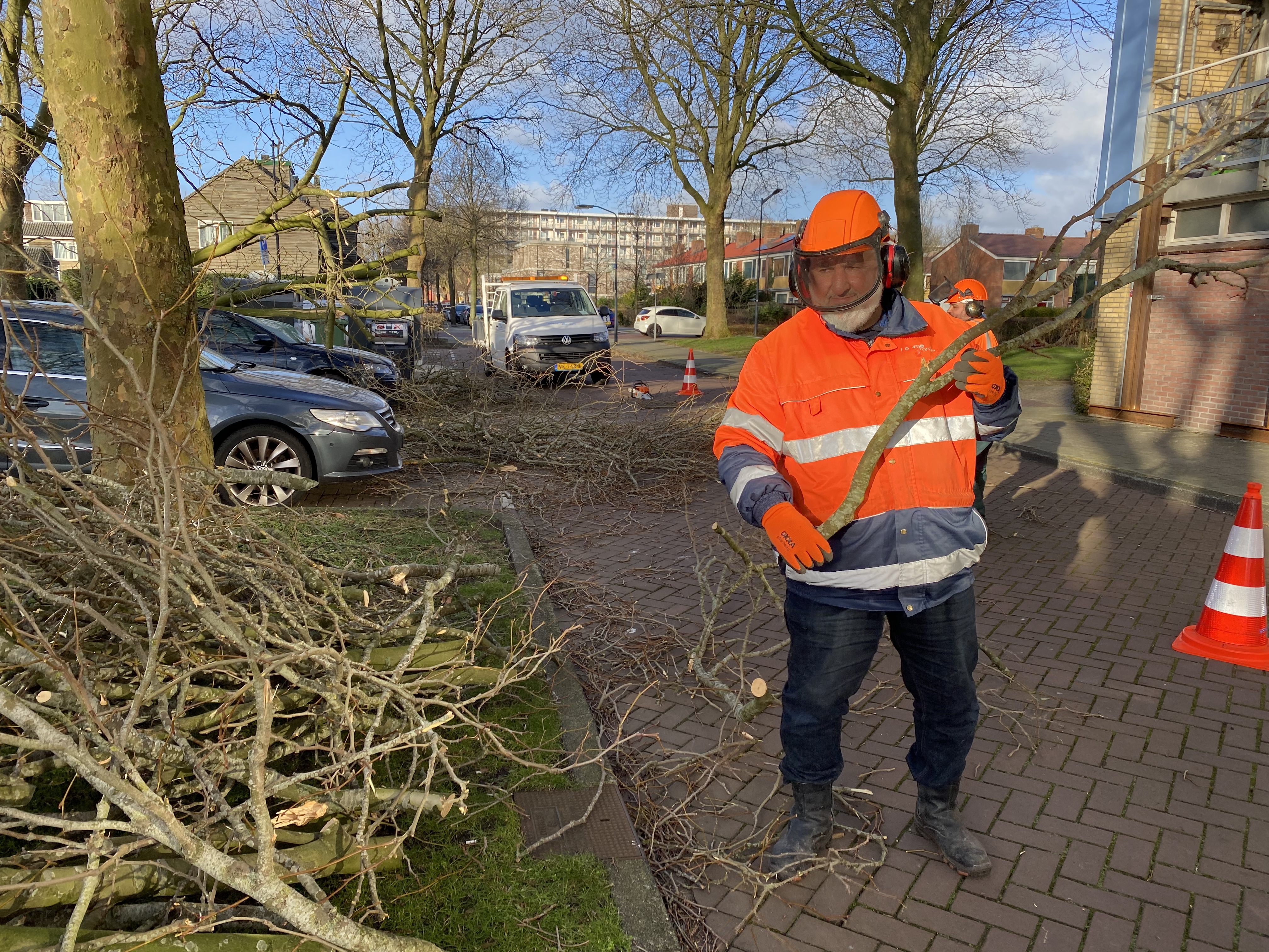 Door storm Eunice zijn er in de stad gister en vannacht meerdere bomen omgewaaid, maar volgens Topcinar valt het deze ochtend toch mee. “De brandweer en andere calamiteitendiensten hebben flink opgeruimd vannacht.” Kleine takken en bomen konden de teams van Spaarnelanden zelf van de weg halen. Voor de grote stammen zijn machines nodig, daarvoor werden aannemers ingehuurd.