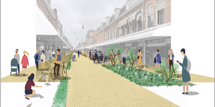 Zo wordt extra ruimte gemaakt voor terrassen en groen. Door de winkelstraat komt een groene strook die zorgt voor een scheiding tussen de rijbaan en het voetpad en een voorzieningenstrook. Die bestaat uit onder meer andere auto- en fietsparkeerplekken, bankjes en terrassen.